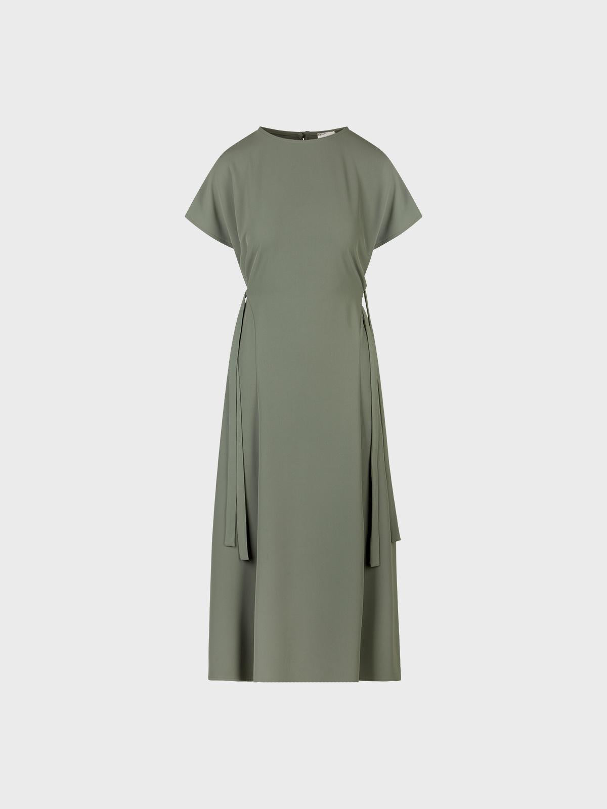 Abito con gonna svasata manica intera e motivo di lacci laterali