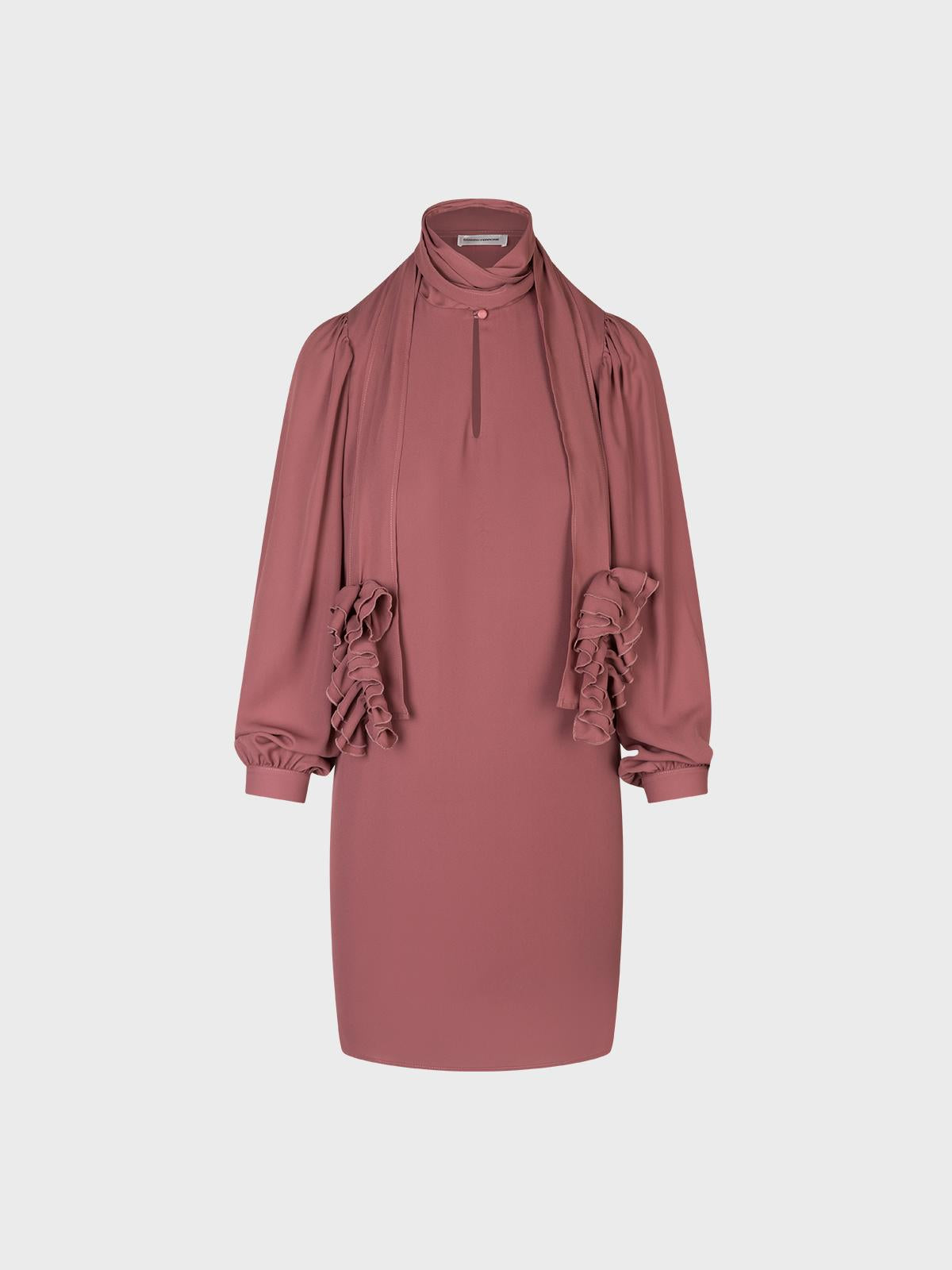 Abito in tripla georgette doppiatoManiche lungheVolants nella sciarpina