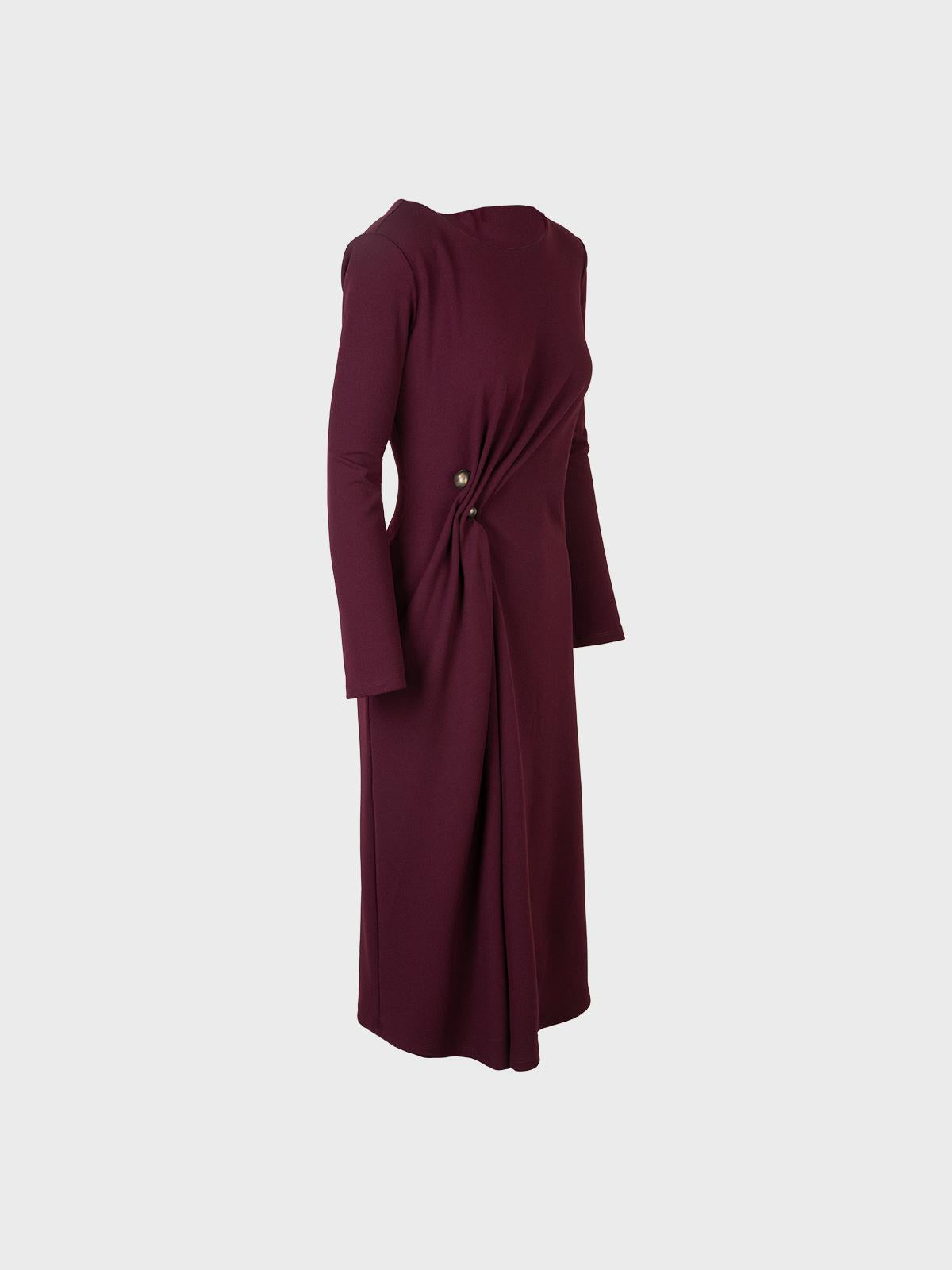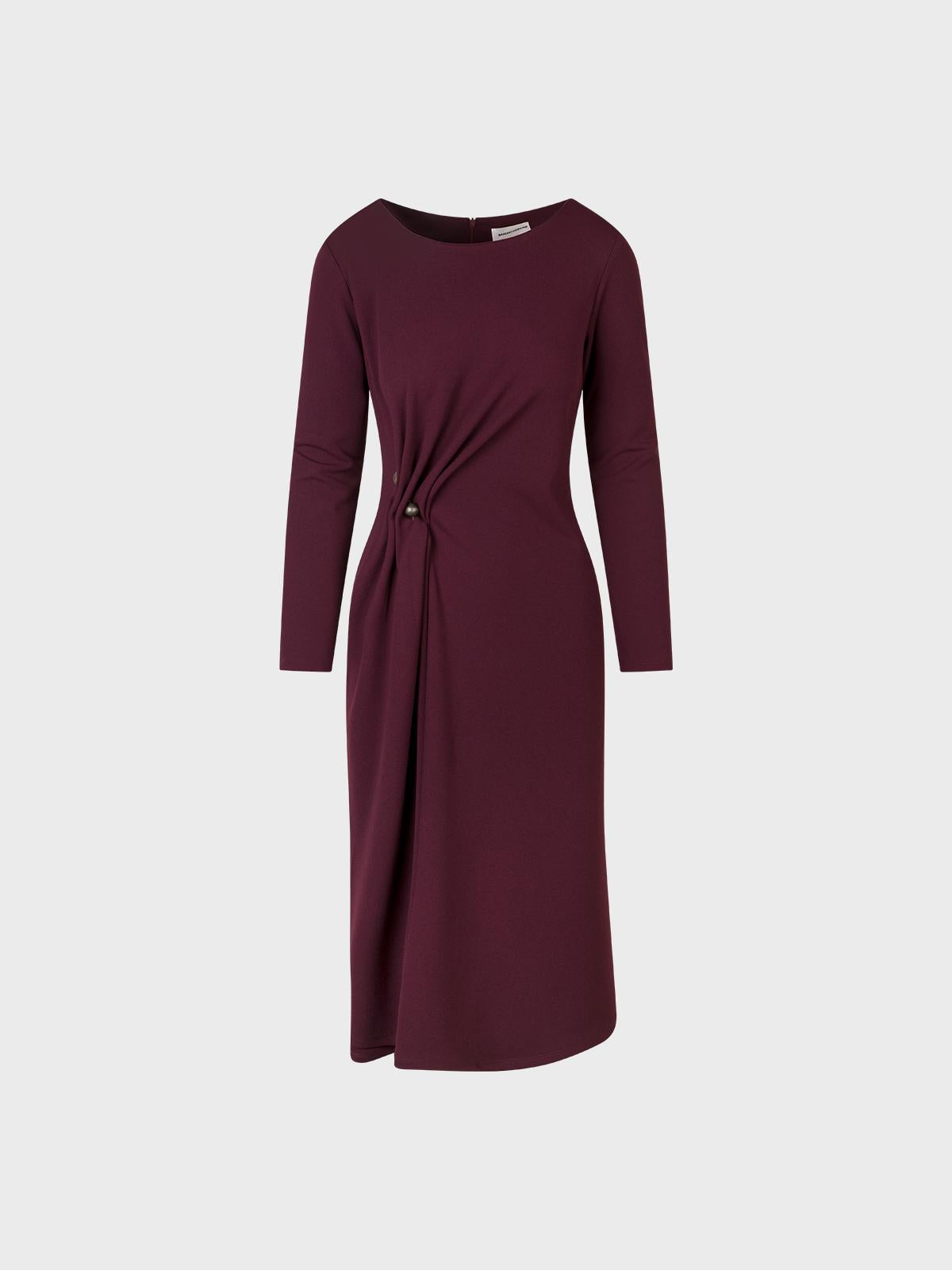 Abito in maglia crepe con scollo barca,maniche lunghe e pieghe laterali con accessorio