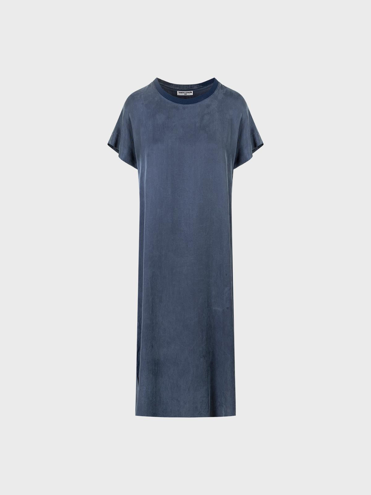 Abito girocollo con costinaManica cortaTessuto effetto lavato