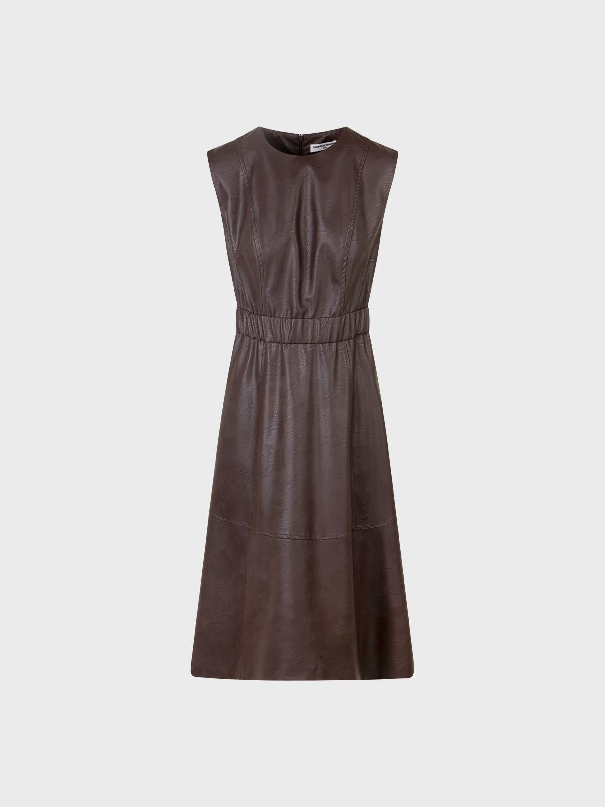 Abito in eco pelle con gonna svasata,elastico in vita e spacco davanti