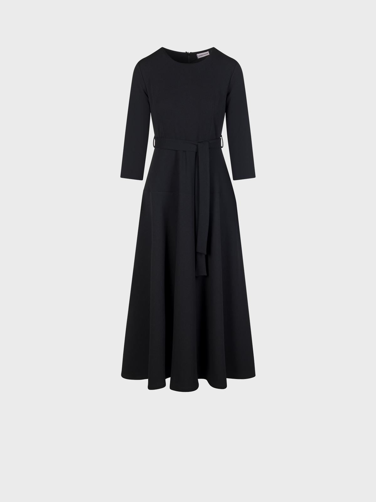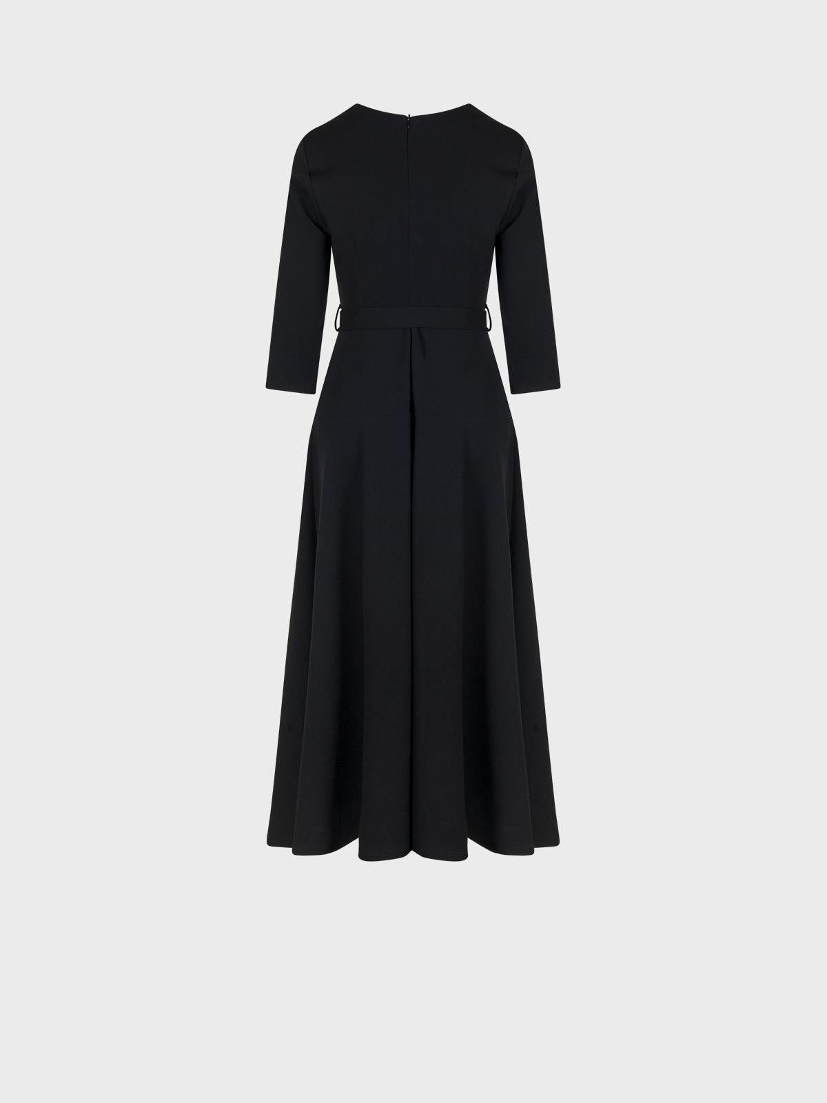 Abito midi in jersey crepeScollo tondoManiche 7/8 con risvoltoGonna a ruotaZip invisibile nel centro dietro
