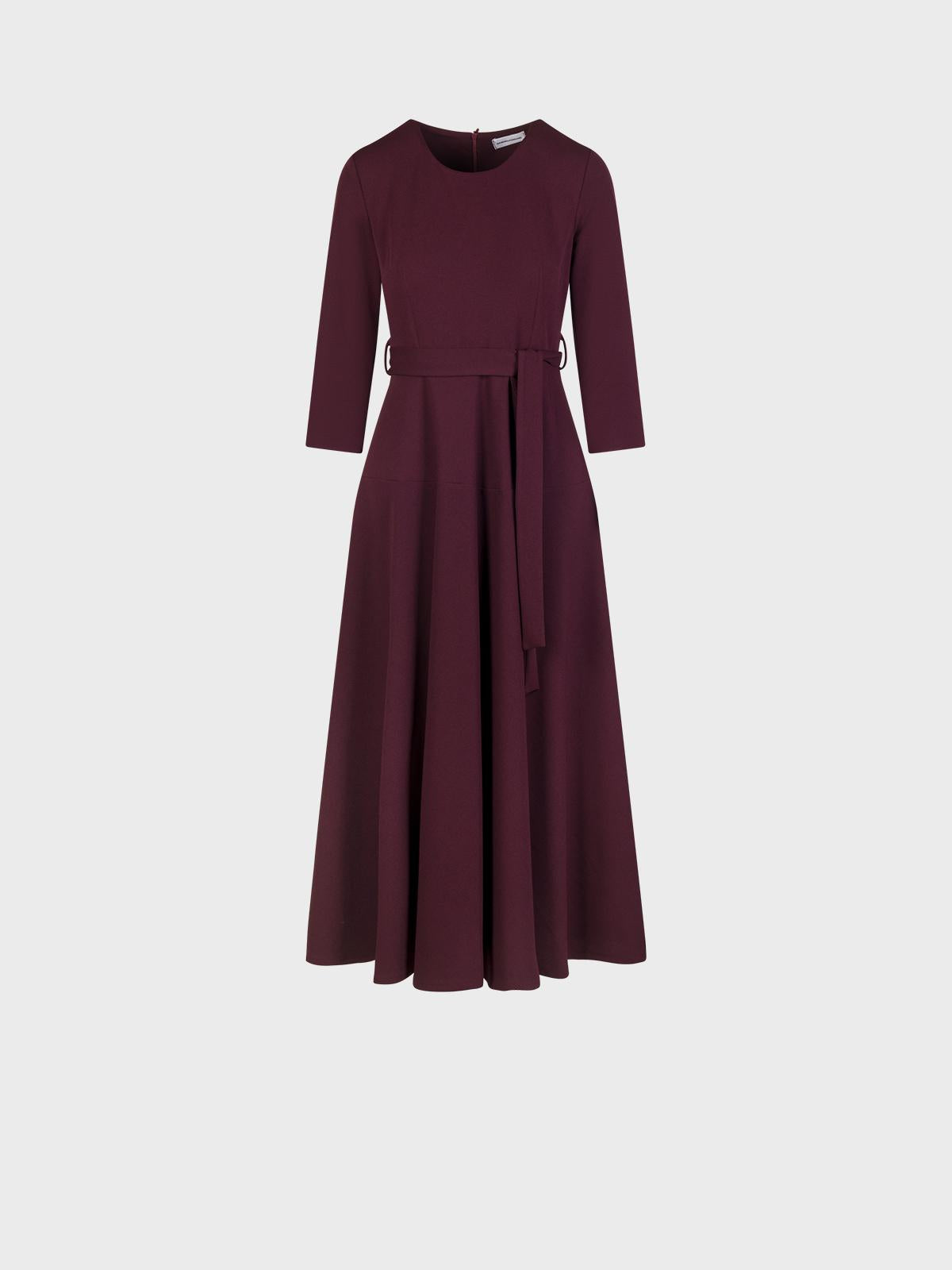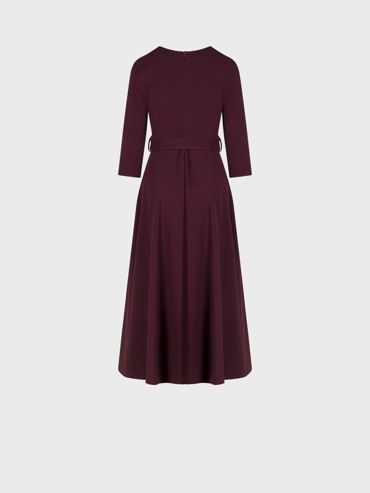 Abito midi in jersey crepeScollo tondoManiche 7/8 con risvoltoGonna a ruotaZip invisibile nel centro dietro