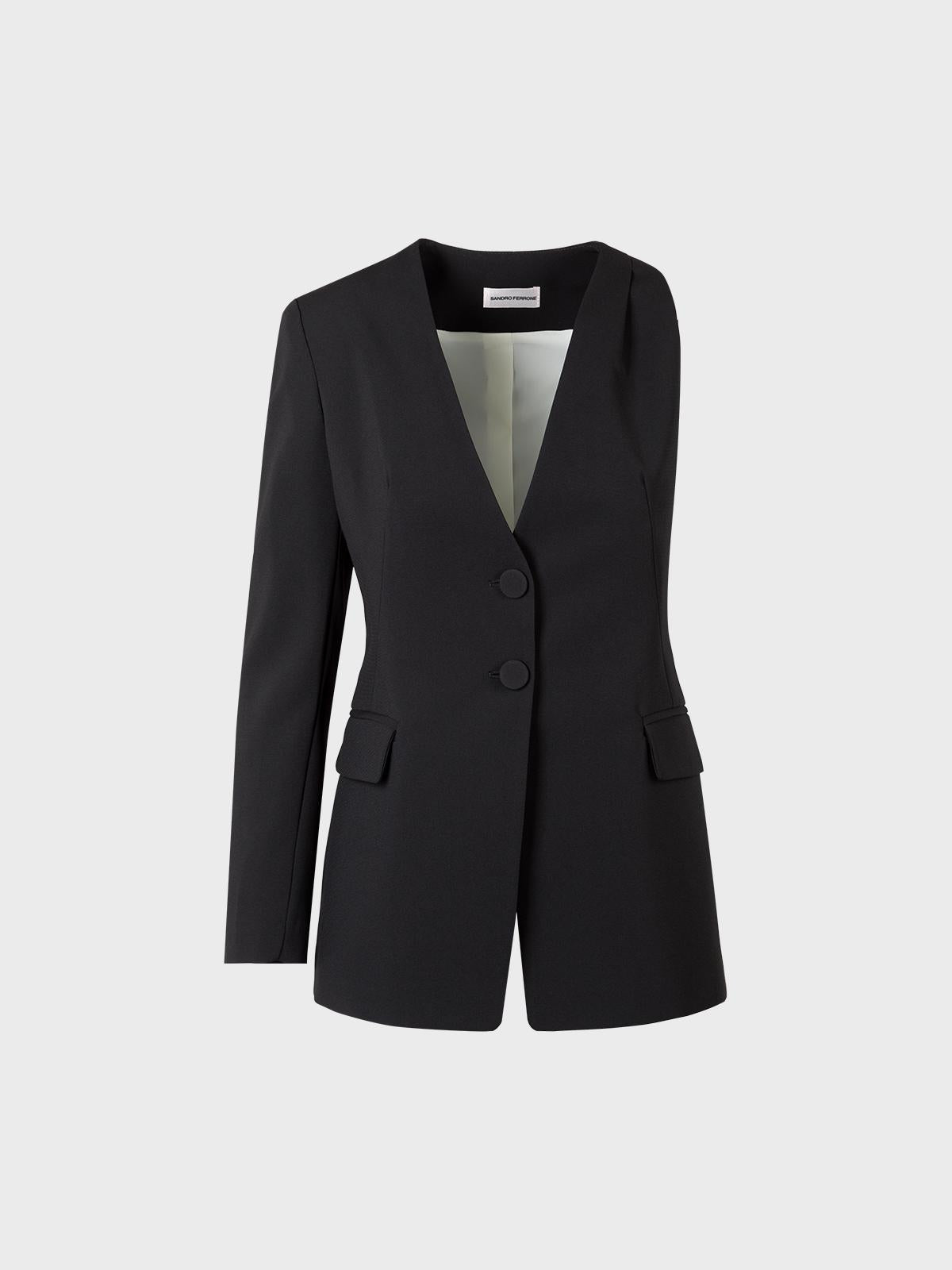Blazer monospalla in crepe fluido con due bottoni,fodera in contrasto