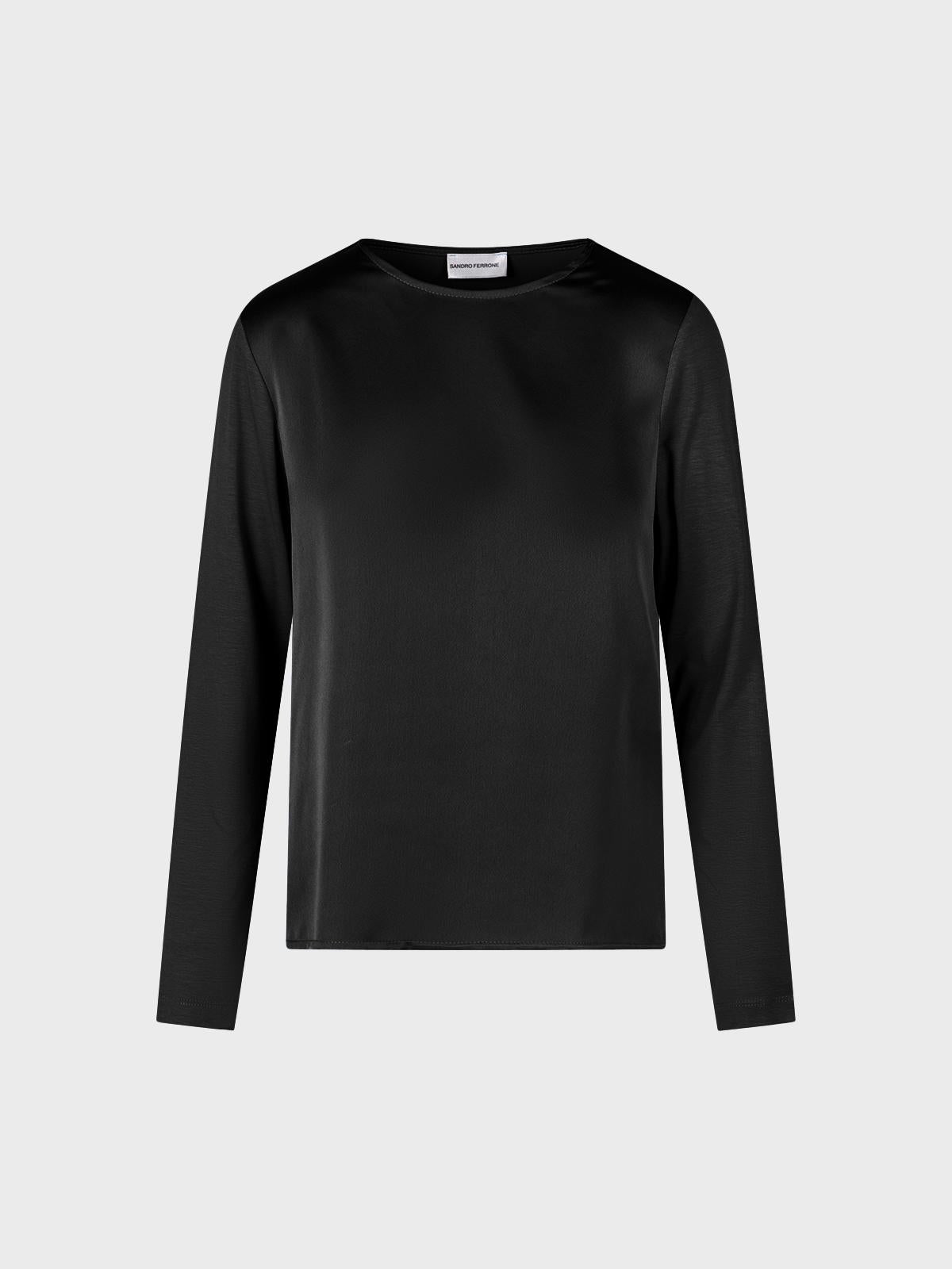 Blusa combinata con scollo a barca,maniche lunghe e schiena in jersey di viscosa
