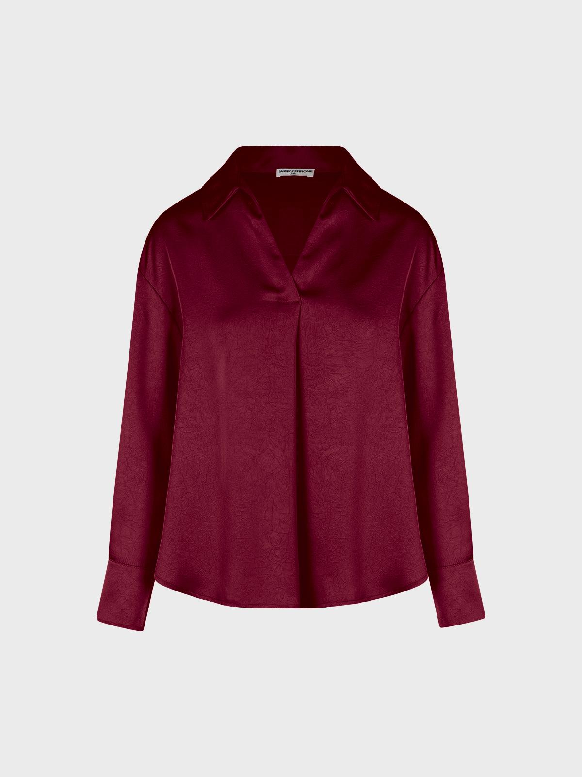 Blusa scollo a polo con tessuto dall'effetto froisser