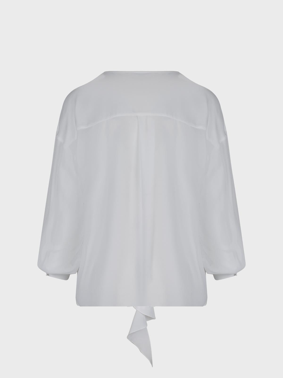 Blusa scollo a v con motivo di rouches davantibottoni oro giro manica calato e arricci su polsi