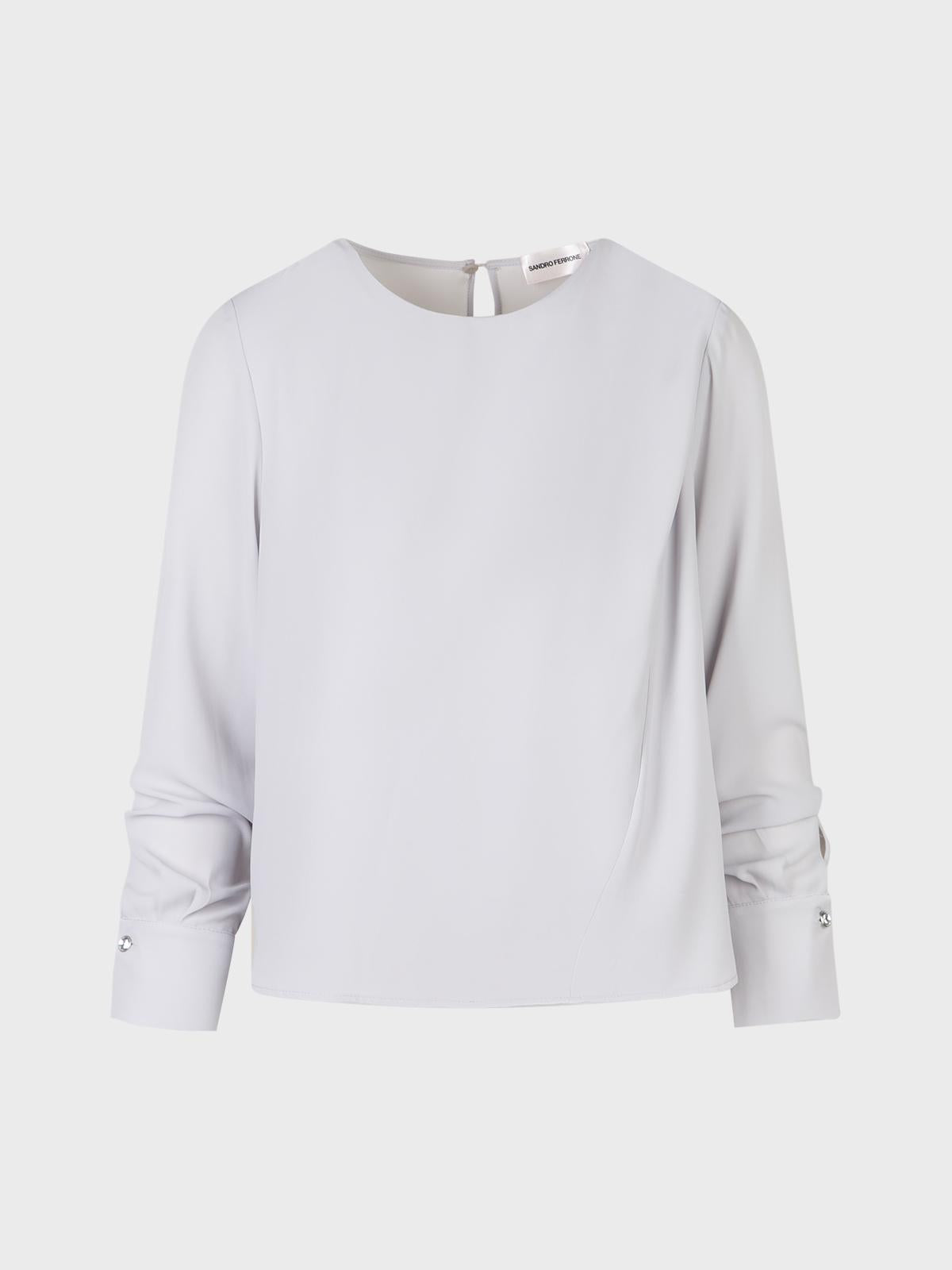 Blusa in doppia georgette con scollo tondo,maniche lunghe e pieghe sulle spalle