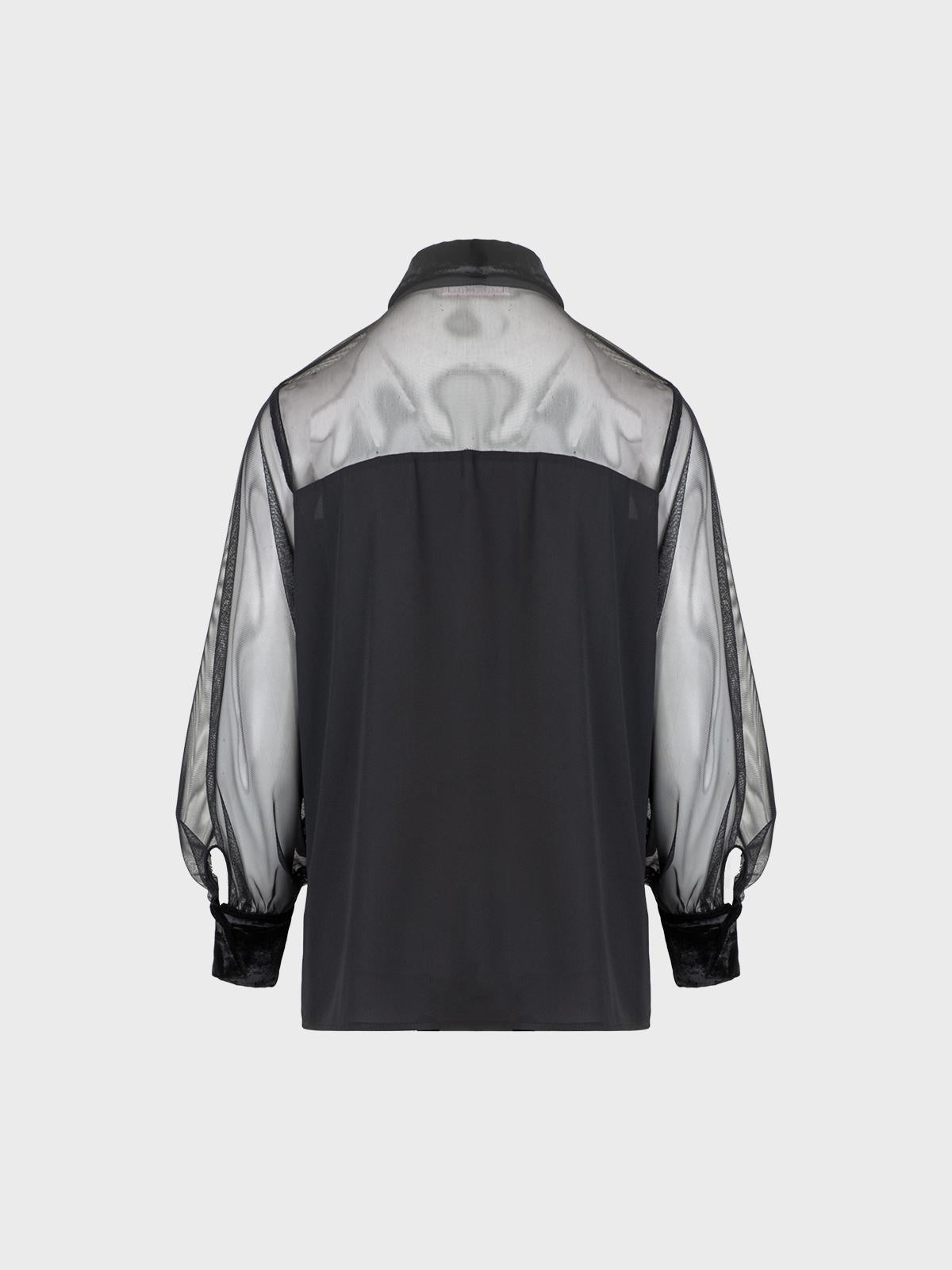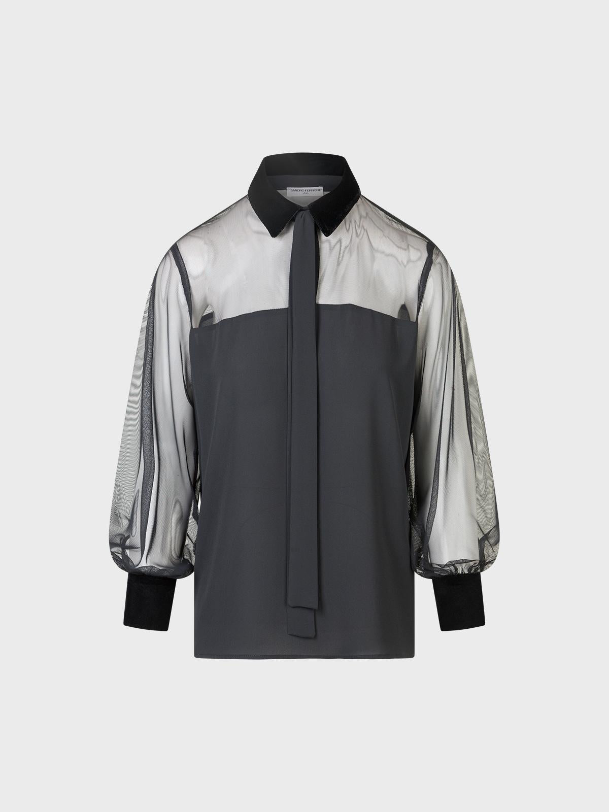 Blusa combinata con tulle nelle maniche e velluto per colletto e polsi