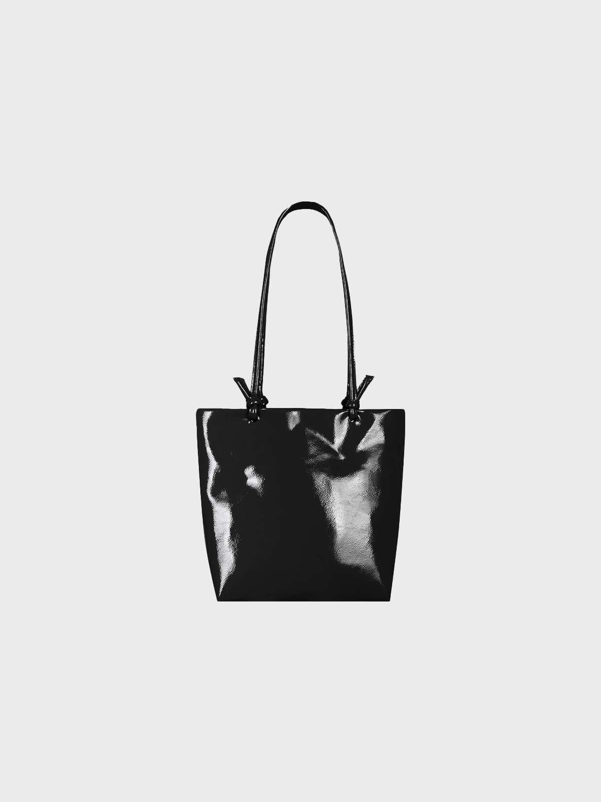 Borsa shopping in vernice crackle con manici annodati,tracolla interna e taschino