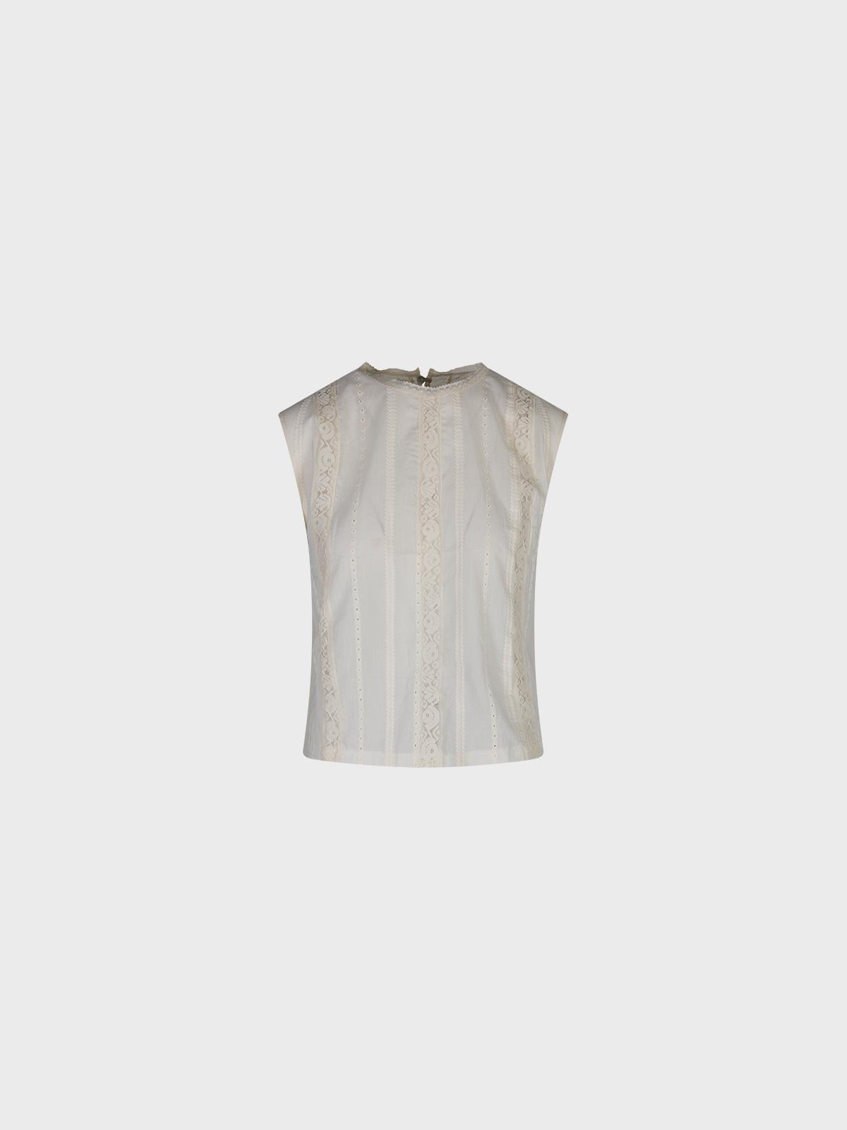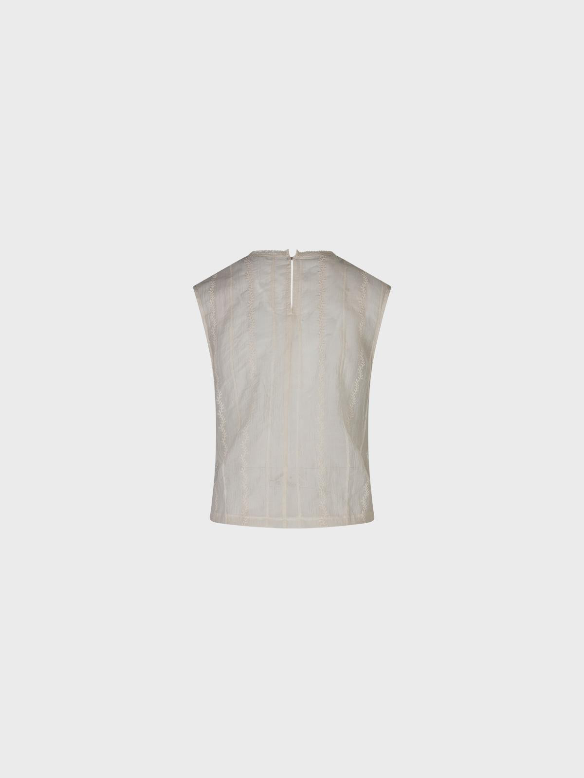 Canotta in mussolaCotone ricamataSchiena in misto lyocell trasparente