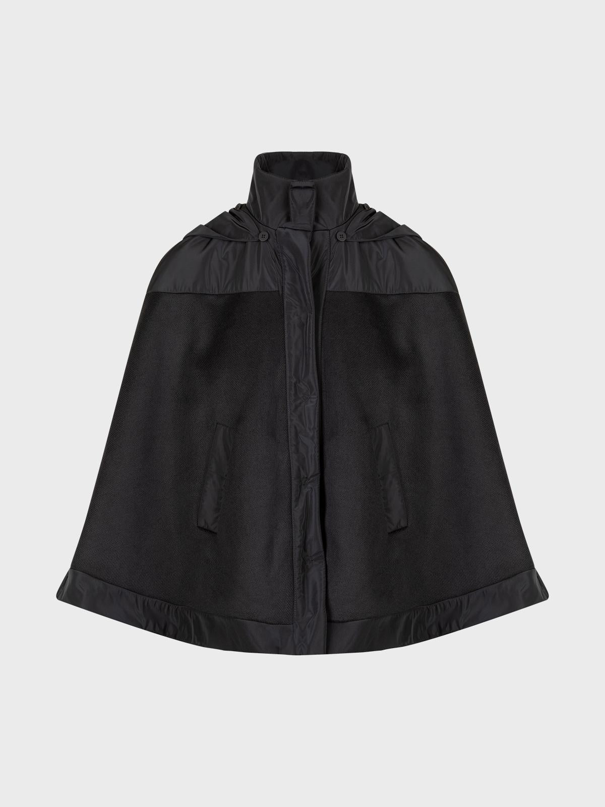 Cappa combinata in panno di poliviscosa e inserti in nylon con tasche a filetto e allacciatura con zip