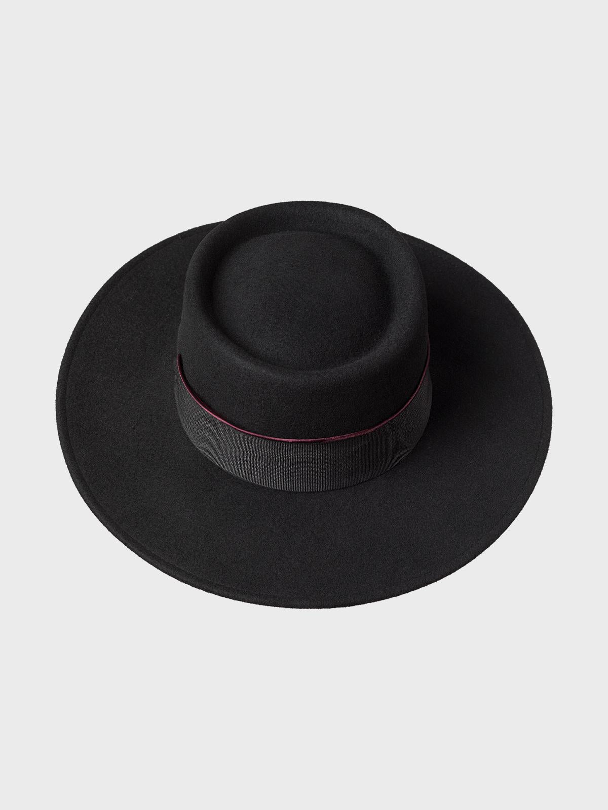 Cappello di feltro in misto lana con falda larga e gross grain alto e ripiegato laterale