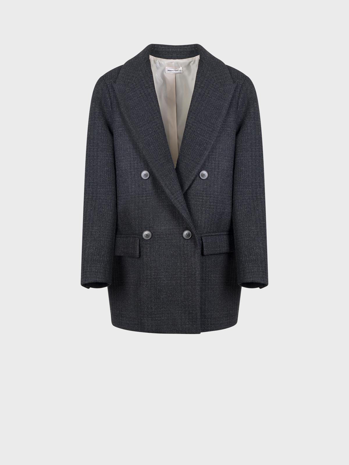 Cappotto corto a quadri con allacciatura doppio petto,revers a lancia e tasche con pattina