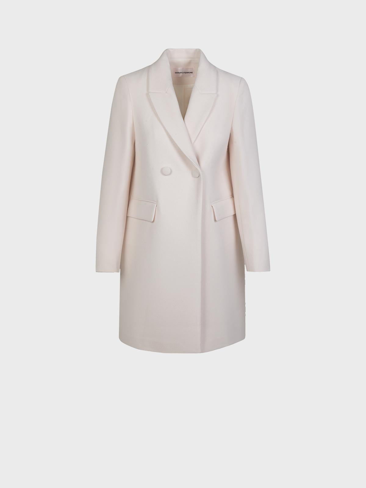 Cappotto basico doppio petto con collo rever a lancia,spacco dietro e tasche a filo con pattina