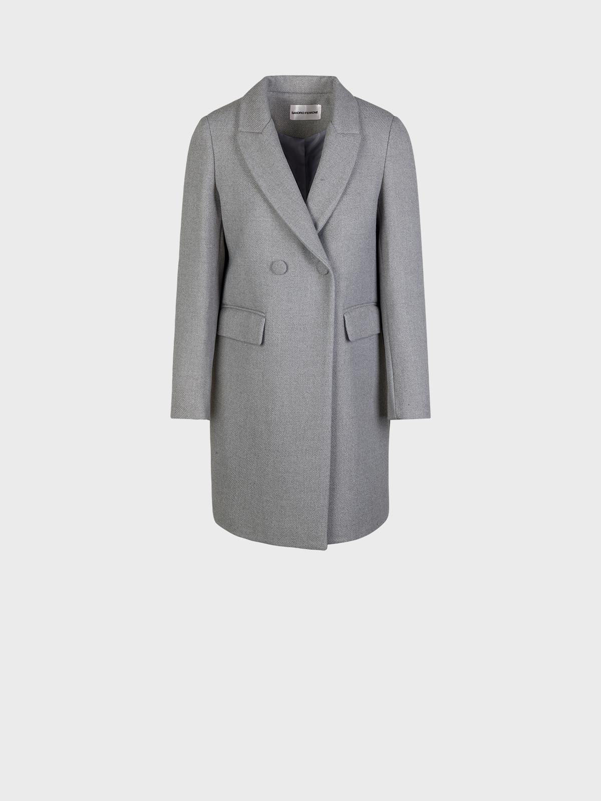 Cappotto basico doppio petto con collo rever a lancia,spacco dietro e tasche a filo con pattina