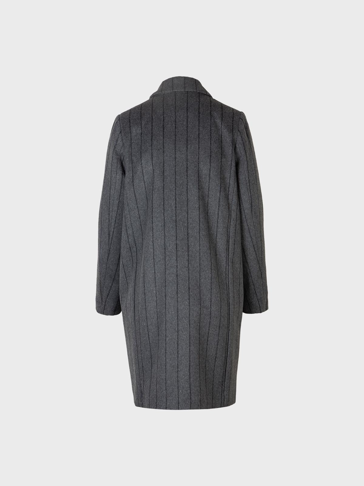 Cappotto in misto lana gessato con allacciatura asimmetrica