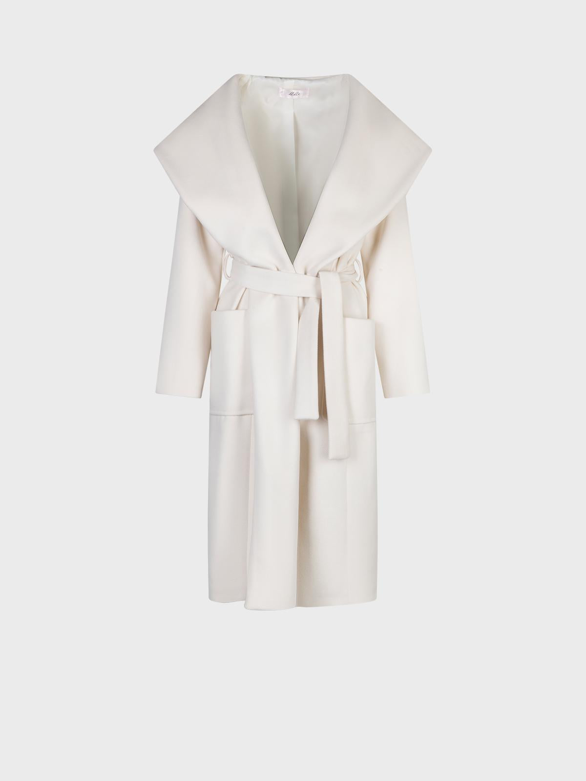 Cappotto lungo modello vestaglia con cappucciospacchi laterali e tasche a toppa