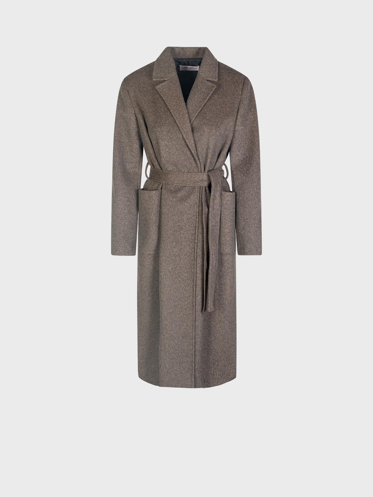 Cappotto lungoPoly viscosa melangeAllacciatura con automaticiTasche applicateSpacchi lateraliCintura
