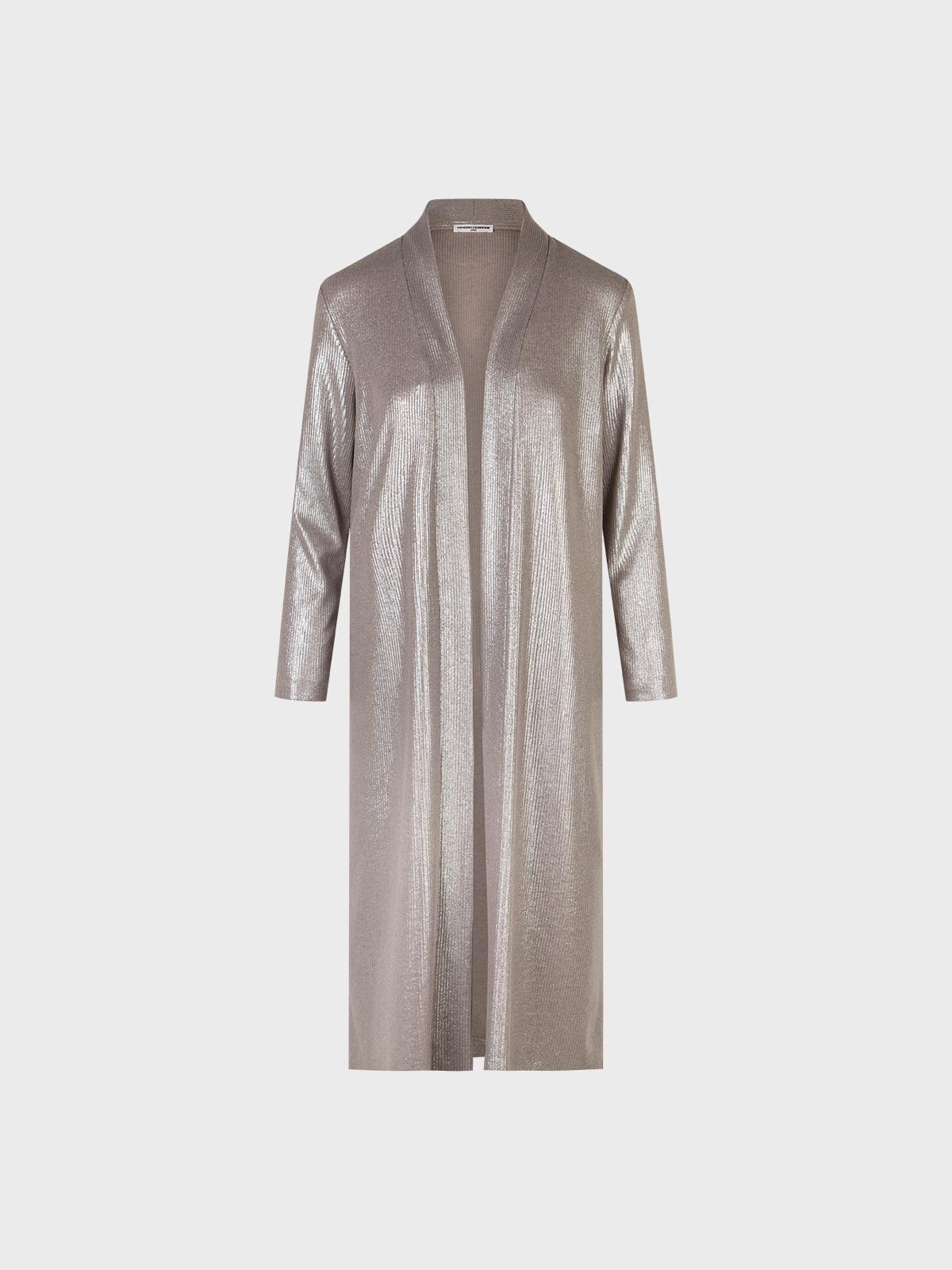 Cardigan lungo a costina con effetto lucido tono su tono