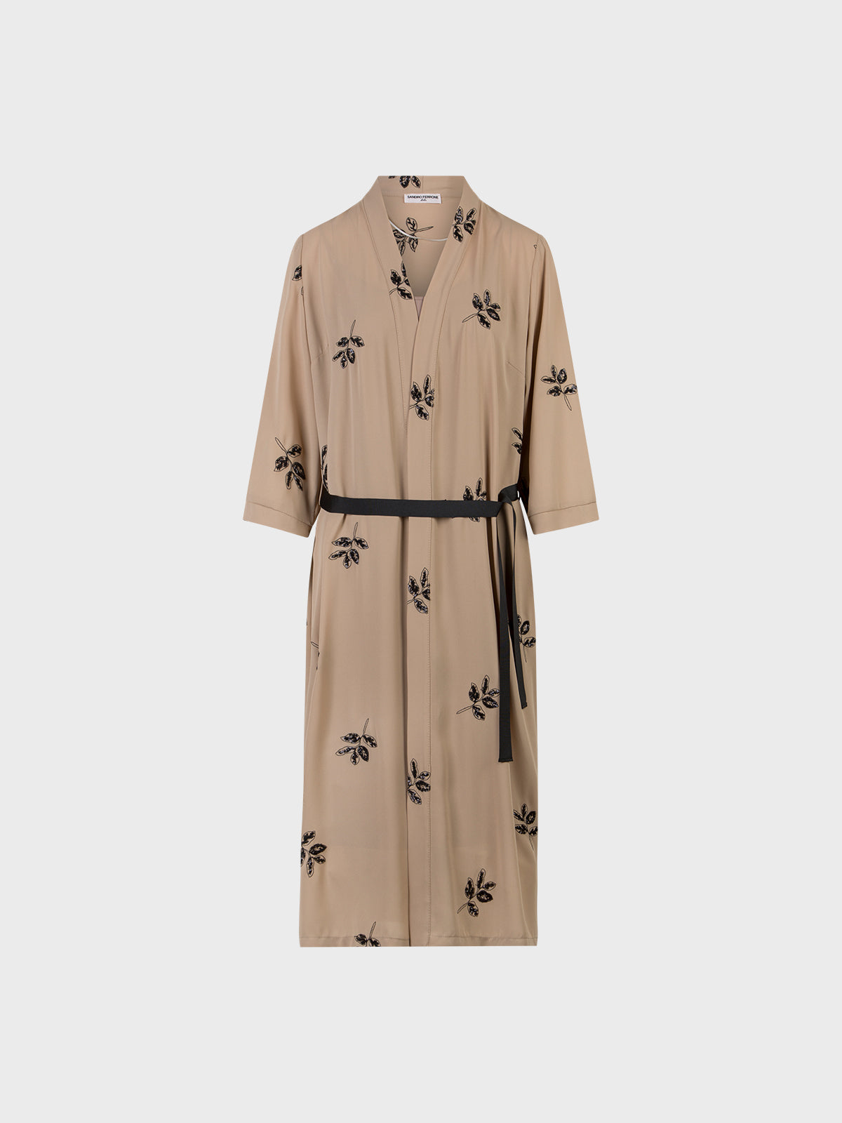 Chimono lungo in raso Ricamato di paillettes a motivo floreale