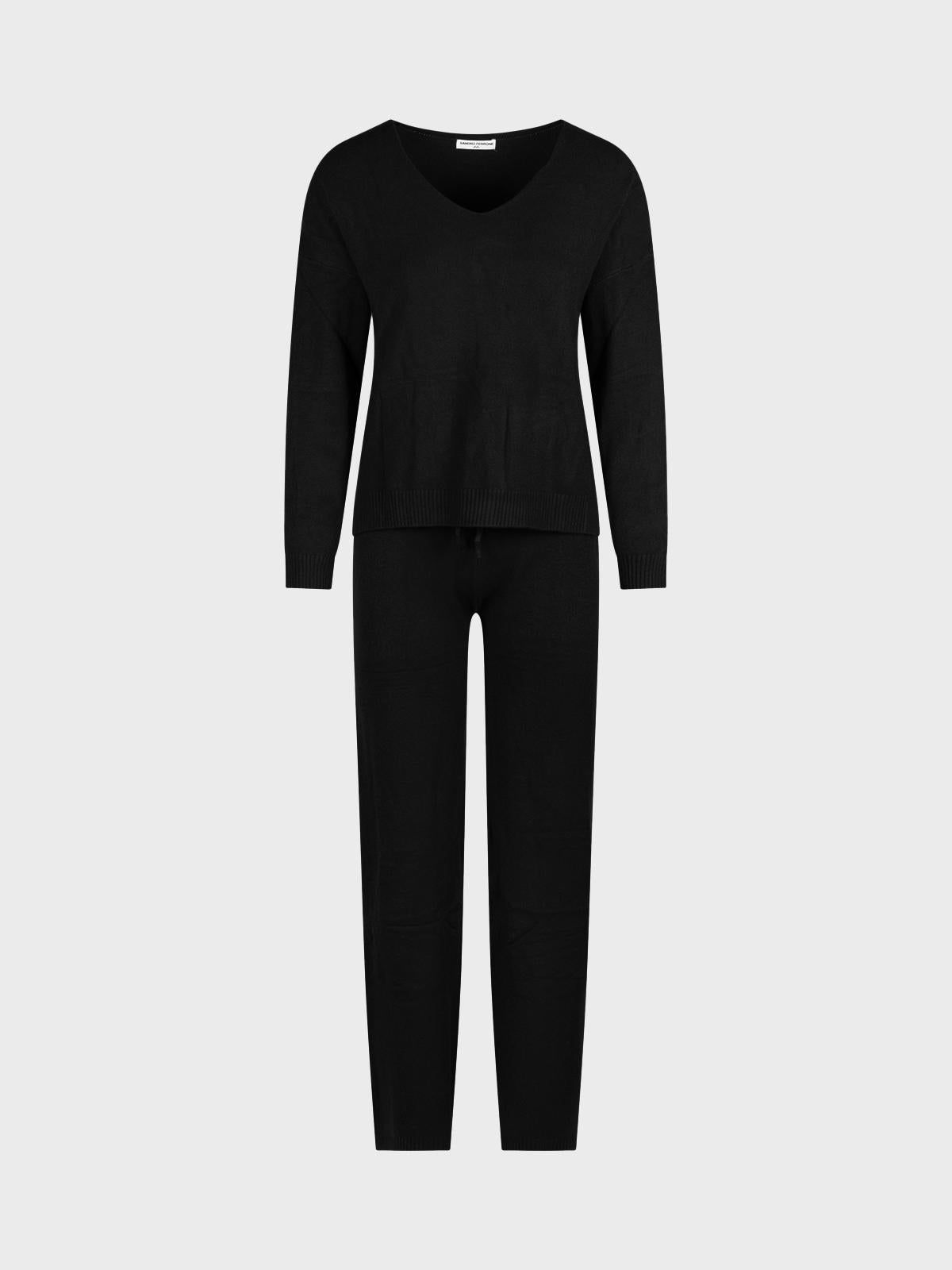 Completo in maglia con pantalone con coulisse, maglia scollo a v con spacchi laterali