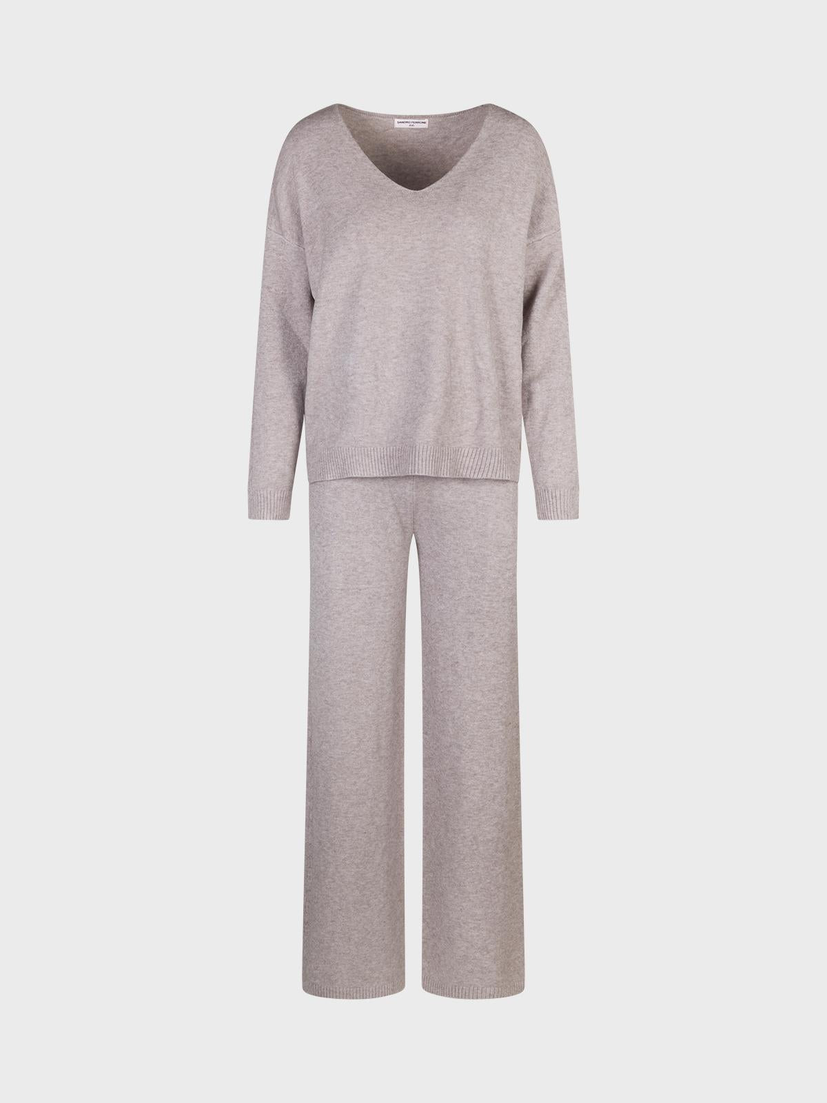 Completo in maglia con pantalone con coulisse, maglia scollo a v con spacchi laterali