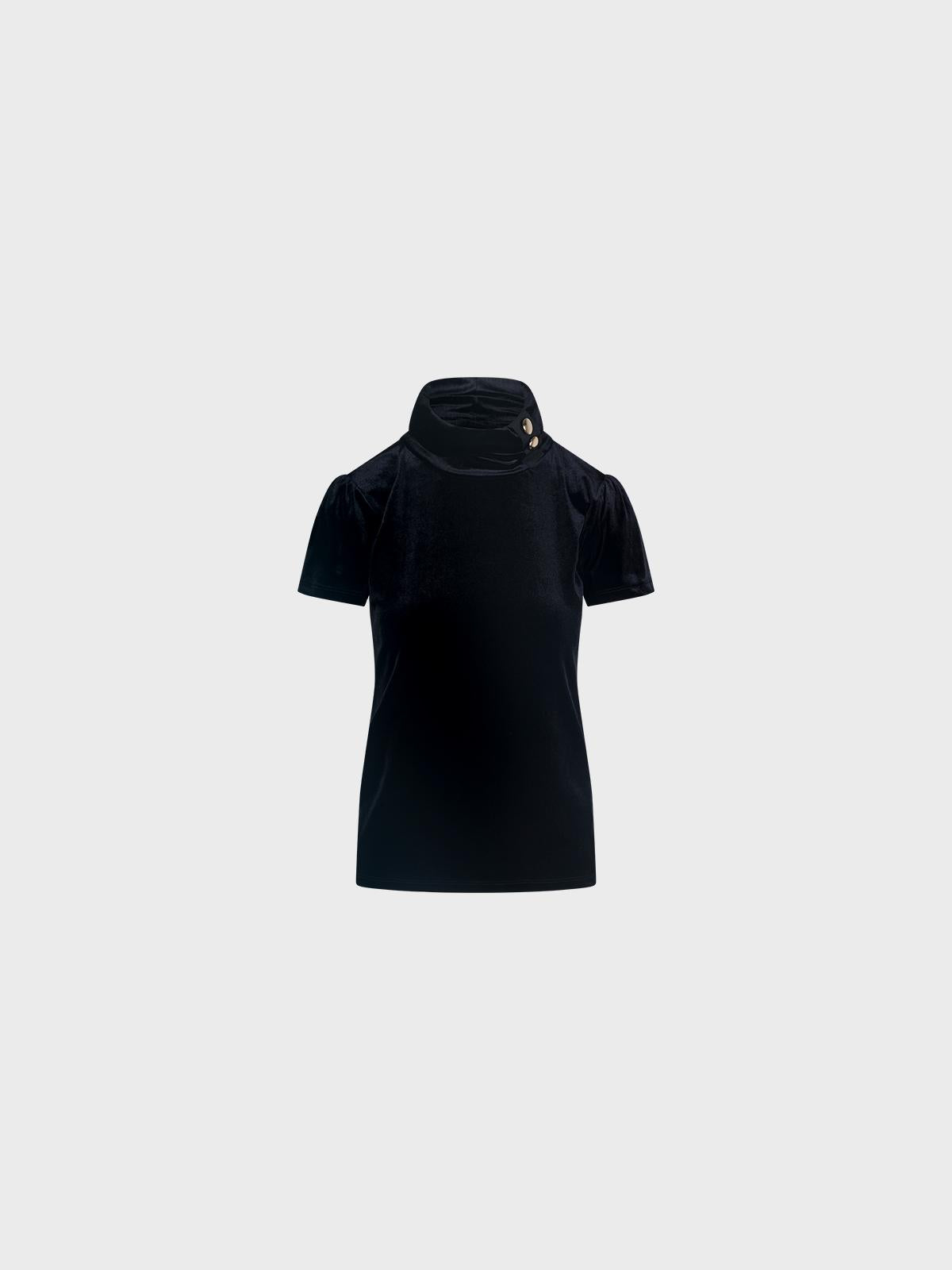 Maglia in vellutoManiche corteScollo lupetto con accessorio