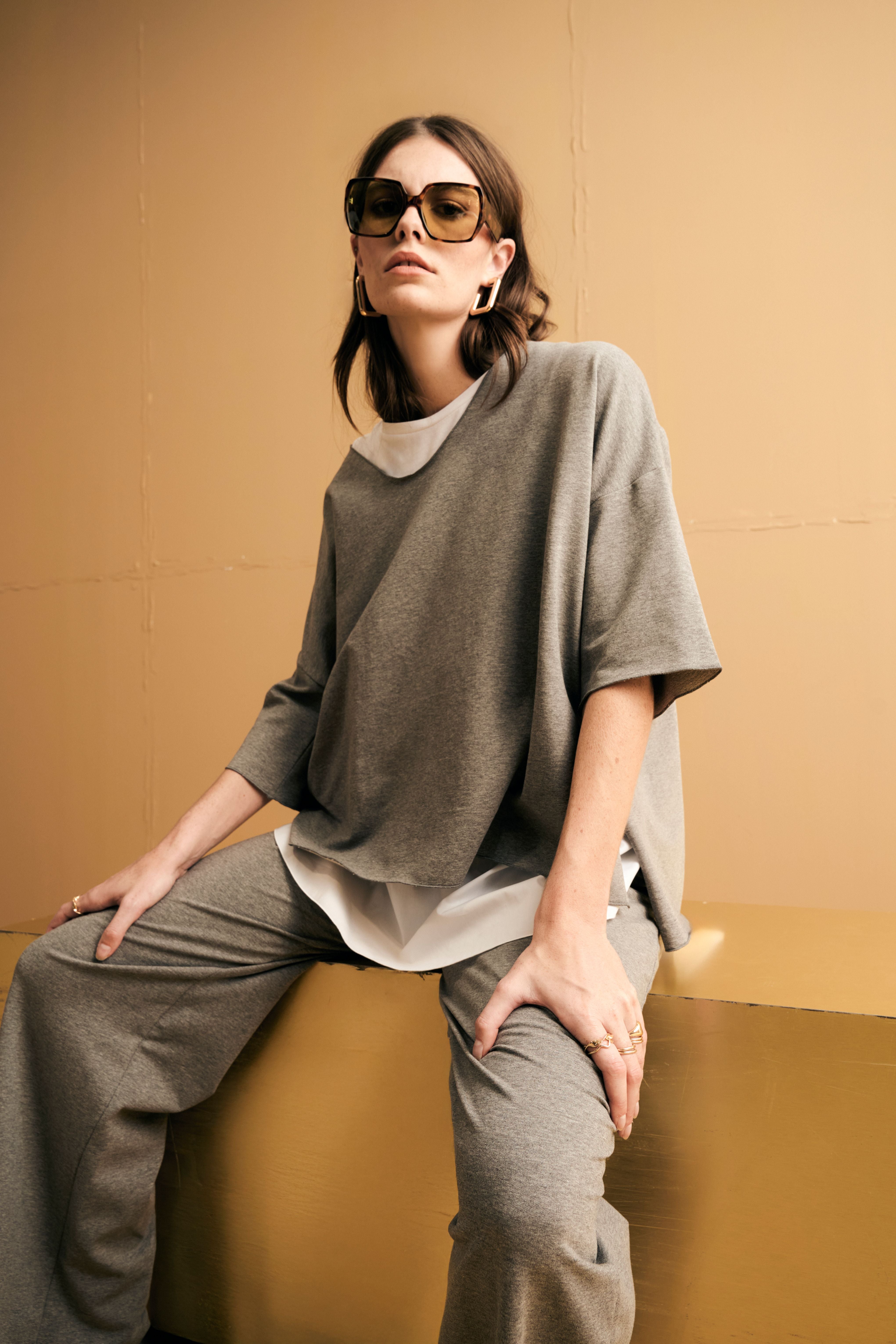 Felpa over e top sotto a contrasto con fondo in popeline