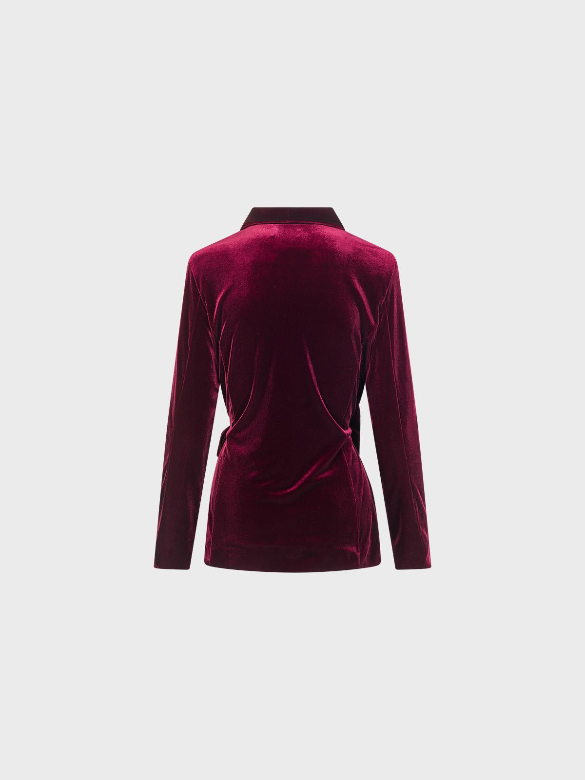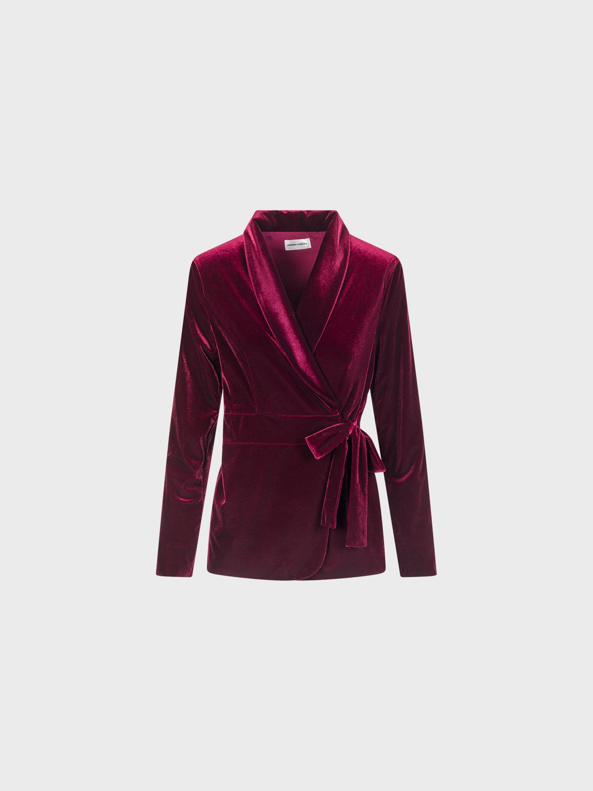 Giacca in velluto di magliaScollo scialleAllacciatura incrociata