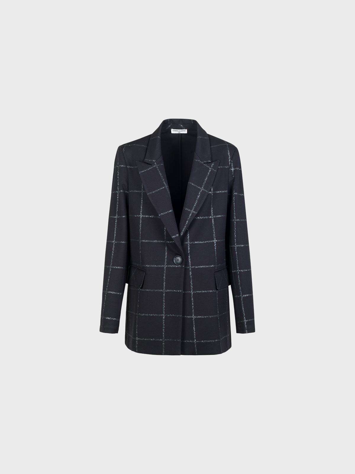 Giacca lunga in maglia con motivo di quadri Lurex termo applicati