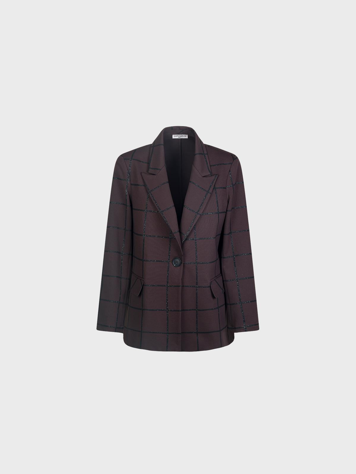 Giacca lunga in maglia con motivo di quadri Lurex termo applicati