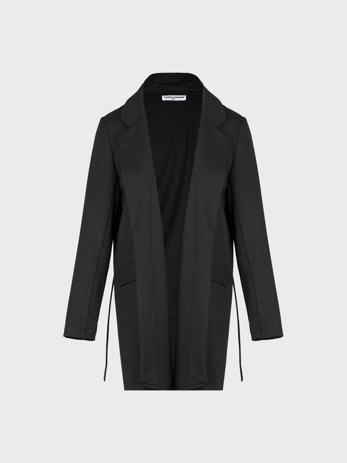 Giacca lunga con spacchi laterali in poliviscosa con borchia lucida