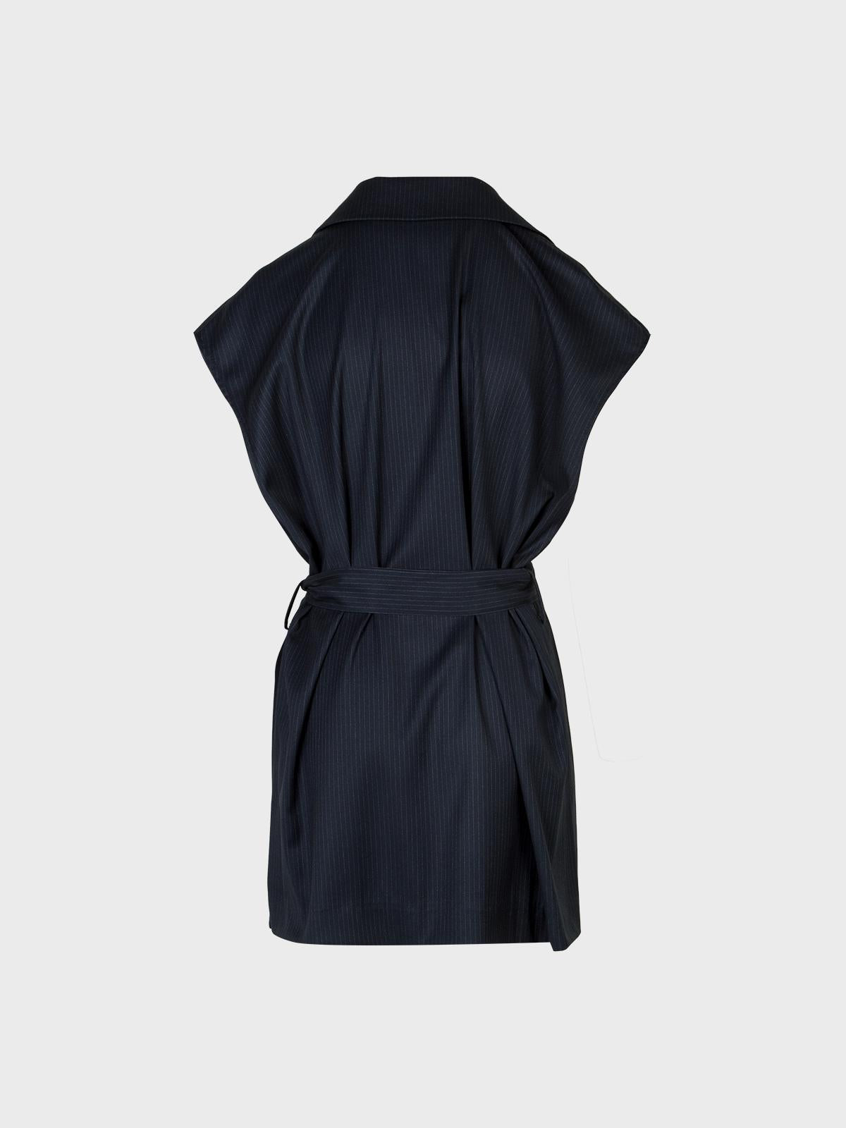 Gilet lungo in poliviscosa gessatocollo e revers con spacchi laterali su fondo