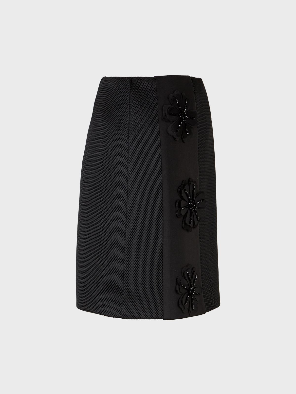 Gonna in microrete doppiataInserto di neopreneFiori ricamati