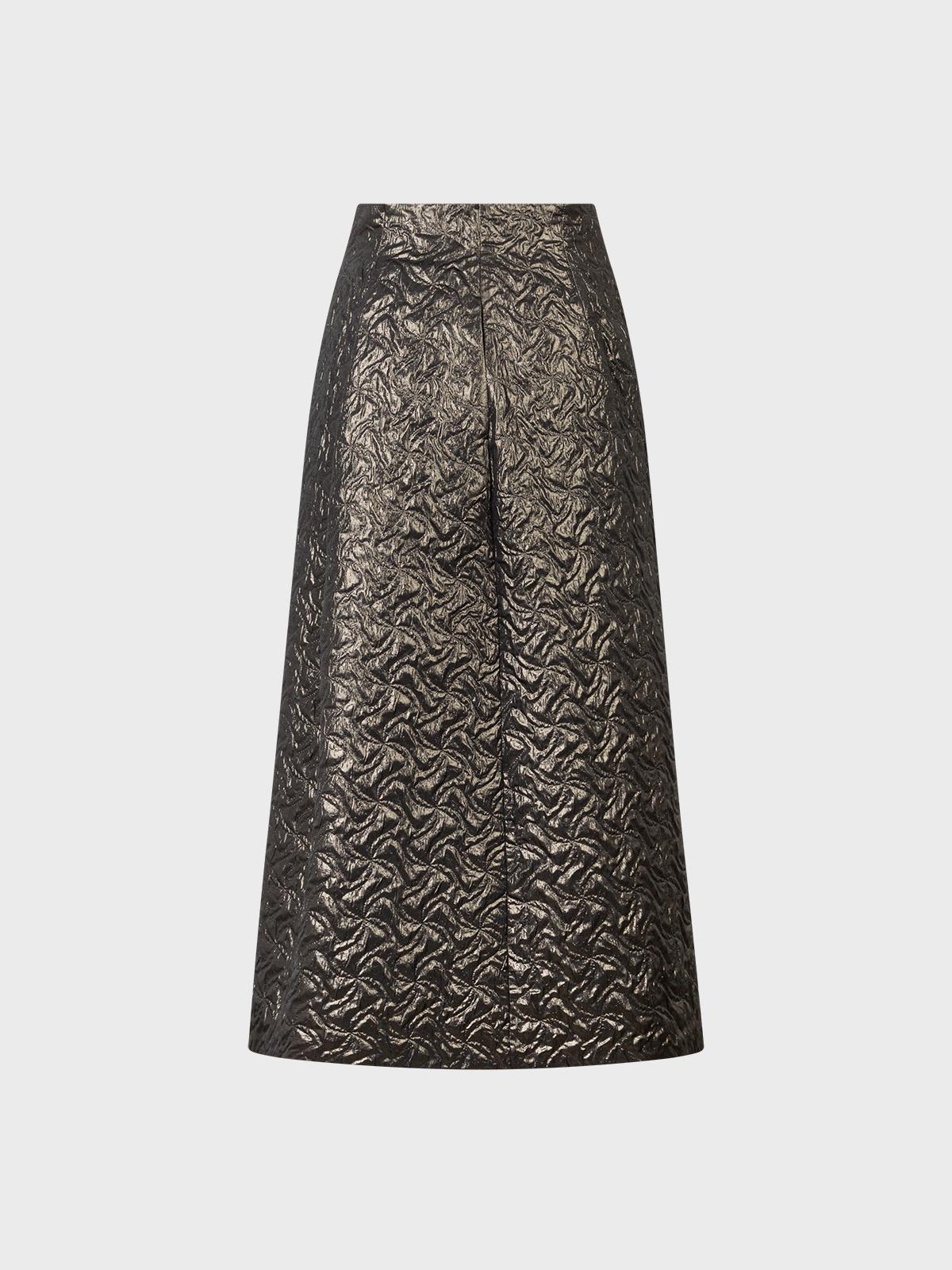 Gonna jacquard montata a pieghe con vita alta e zip invisibile