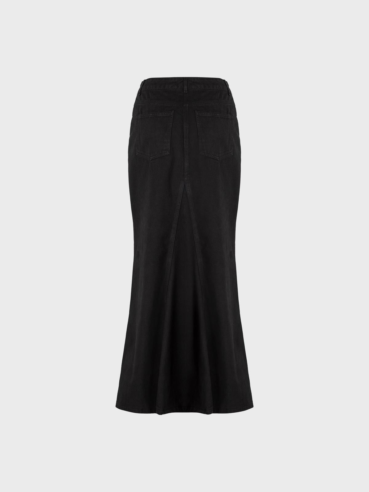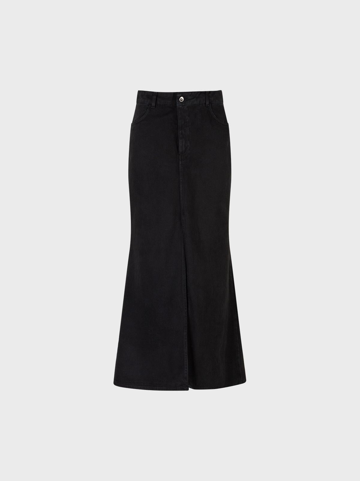 Gonna lunga in denim garzato Allacciatura davanti asimmetricaInserti a godet