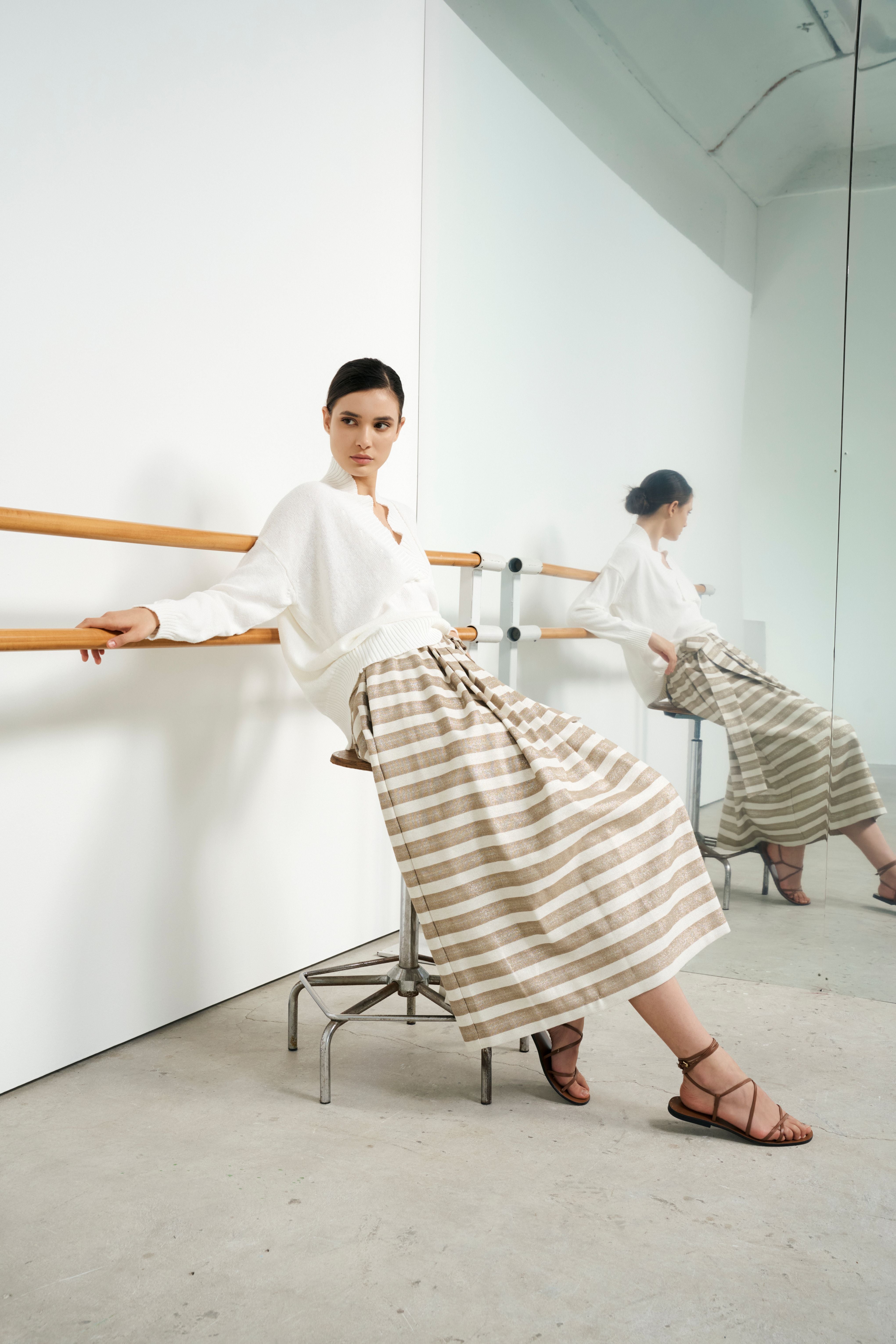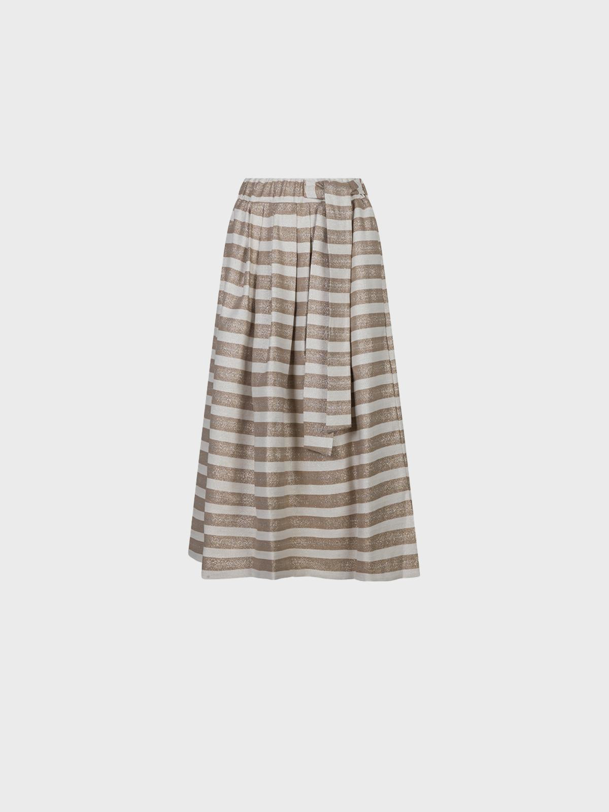 Gonna ampia in misto cotone spinato con lurexElastico ricoperto in vitaCintura da annodare