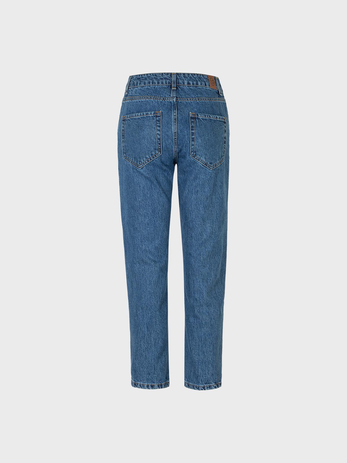 Pantalone cinque tasche boy fit in tela denim con molature su tasche e orlo