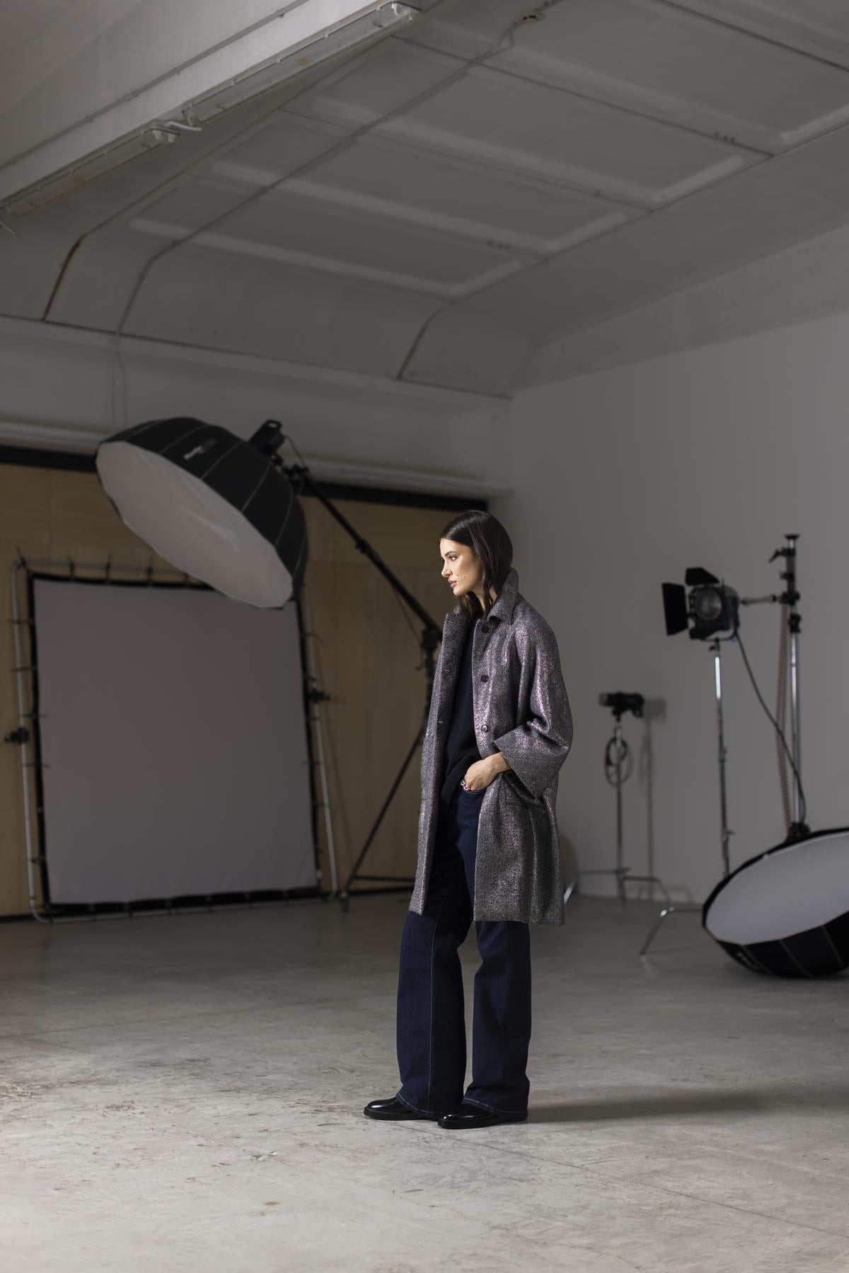 Pantalone palazzo cinque tasche in tela denim comfort lavata
