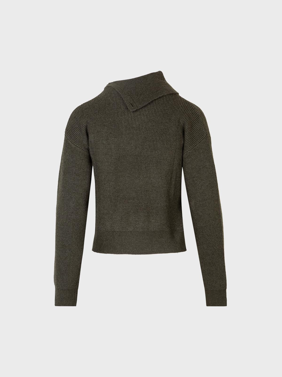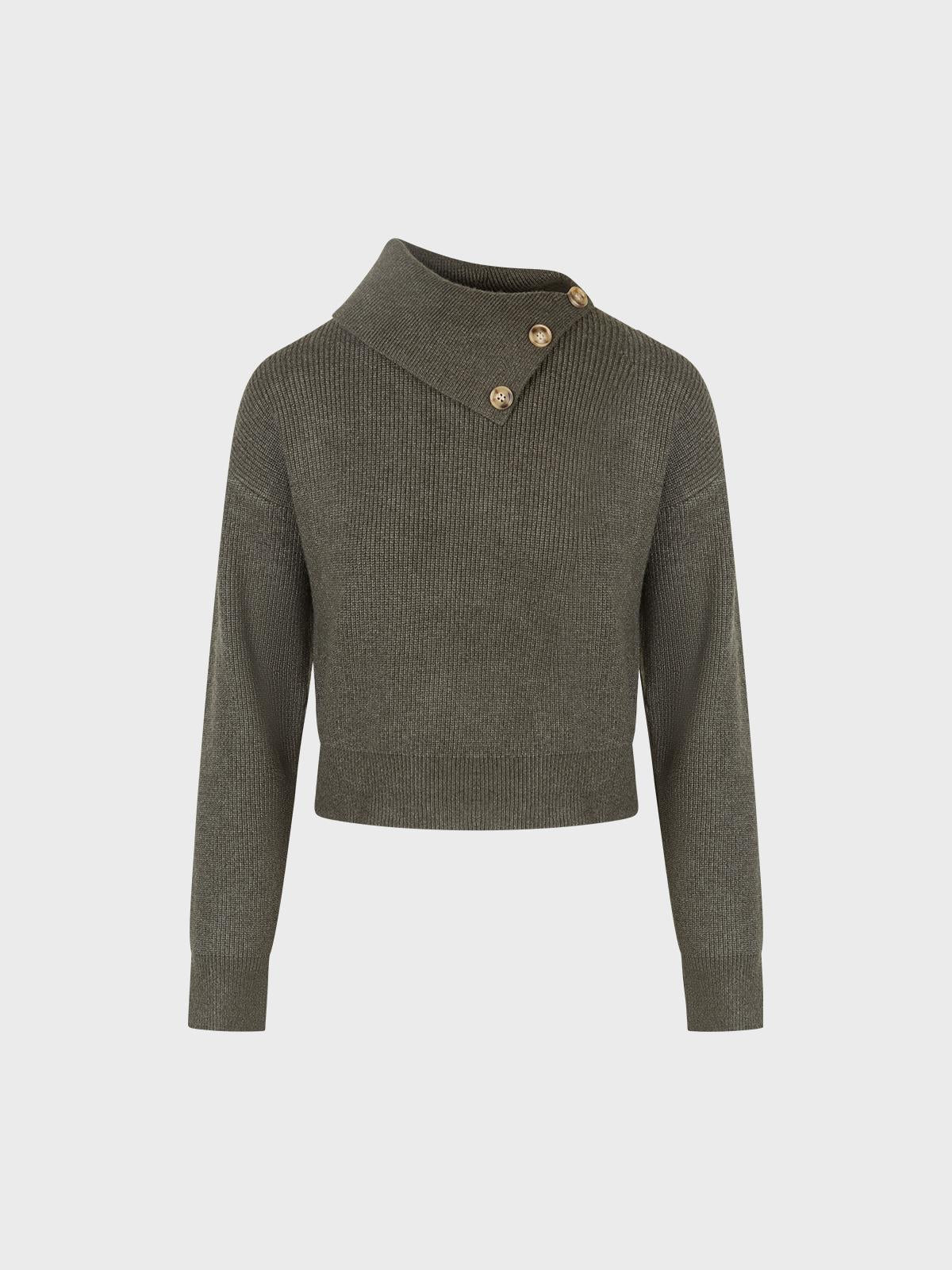 Maglia smacchinata a coste con maniche lunghe e collo alto con bottoni laterali in contrasto