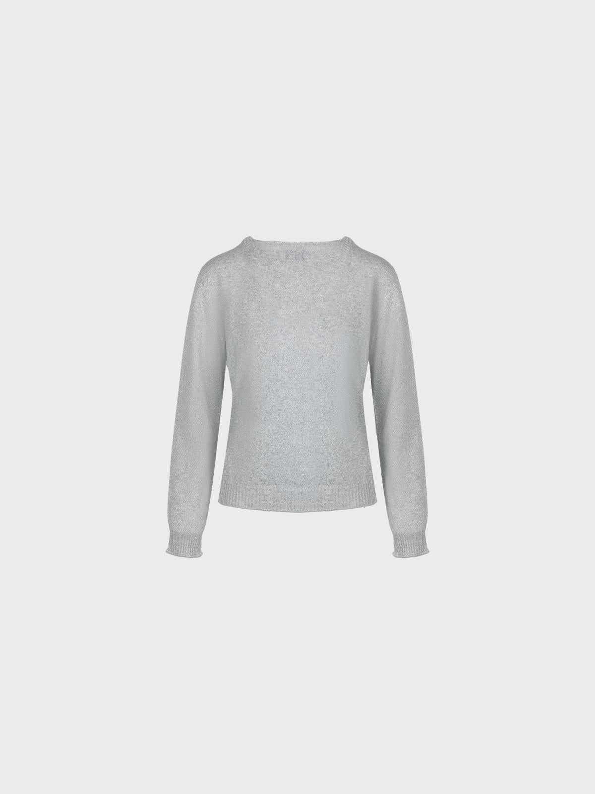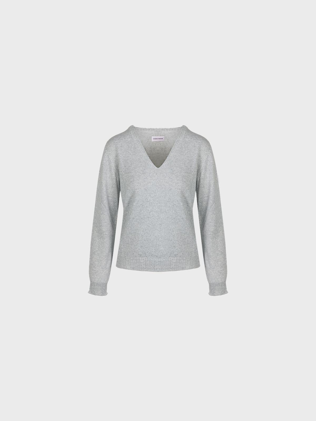 Maglia rasata scollo a v smacchinata con lurex e maniche lunghe
