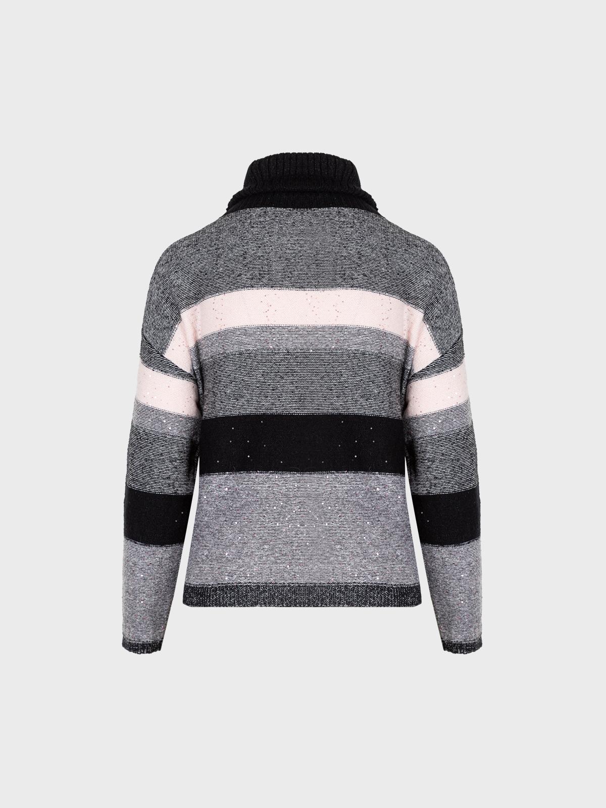 Maglia scollo ciambella con riga e paillettes