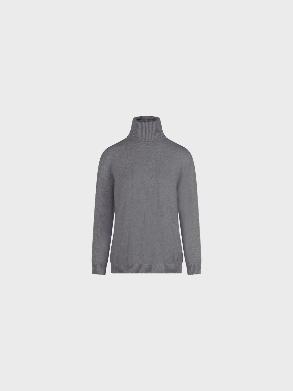 Maglia in viscosa smacchinata con scollo dolcevita e maniche lunghe