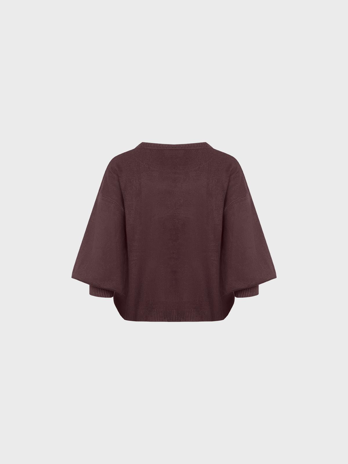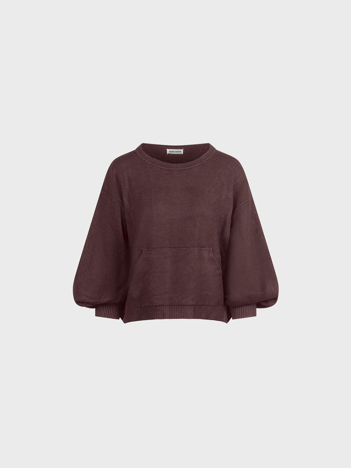 Maglia in viscosa smacchinata con scollo tondo, maniche arricciate e tasca ""marsupio""