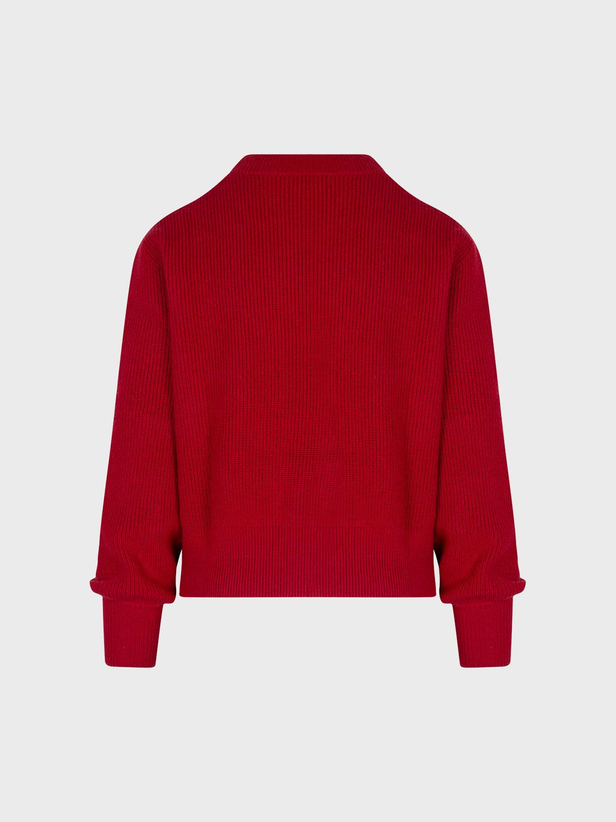 Maglia smacchinata e calata a coste con scollo tondo,maniche lunghe e strass in all over sul davanti