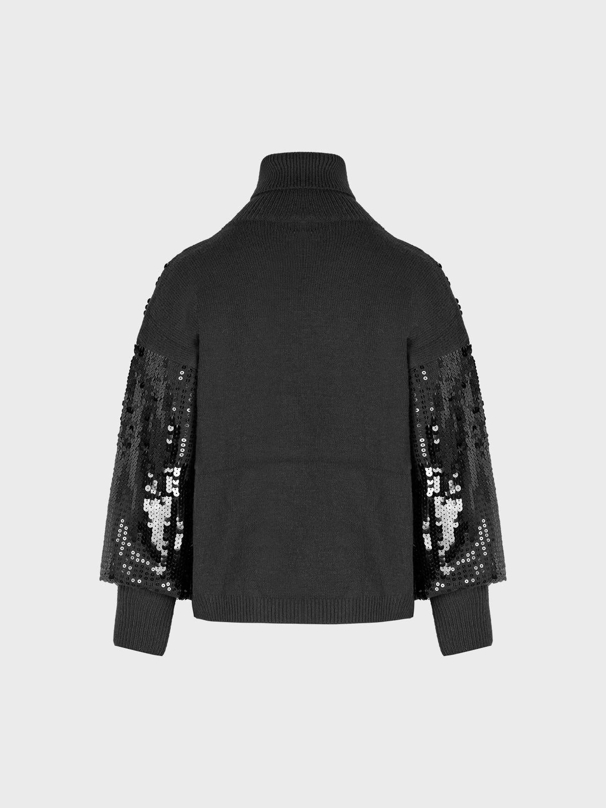 Maglia con scollo dolcevita,maniche lunghe e ricamo di paillettes