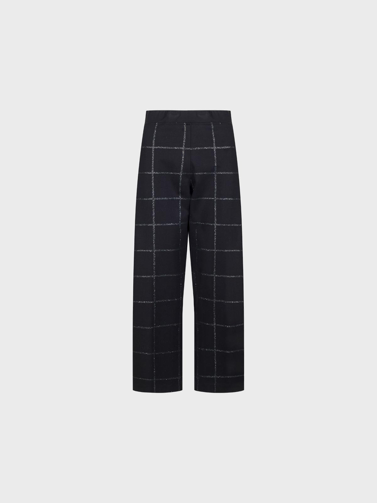 Pantalone cropped fondo ampio Motivo a quadri Lurex termo applicato