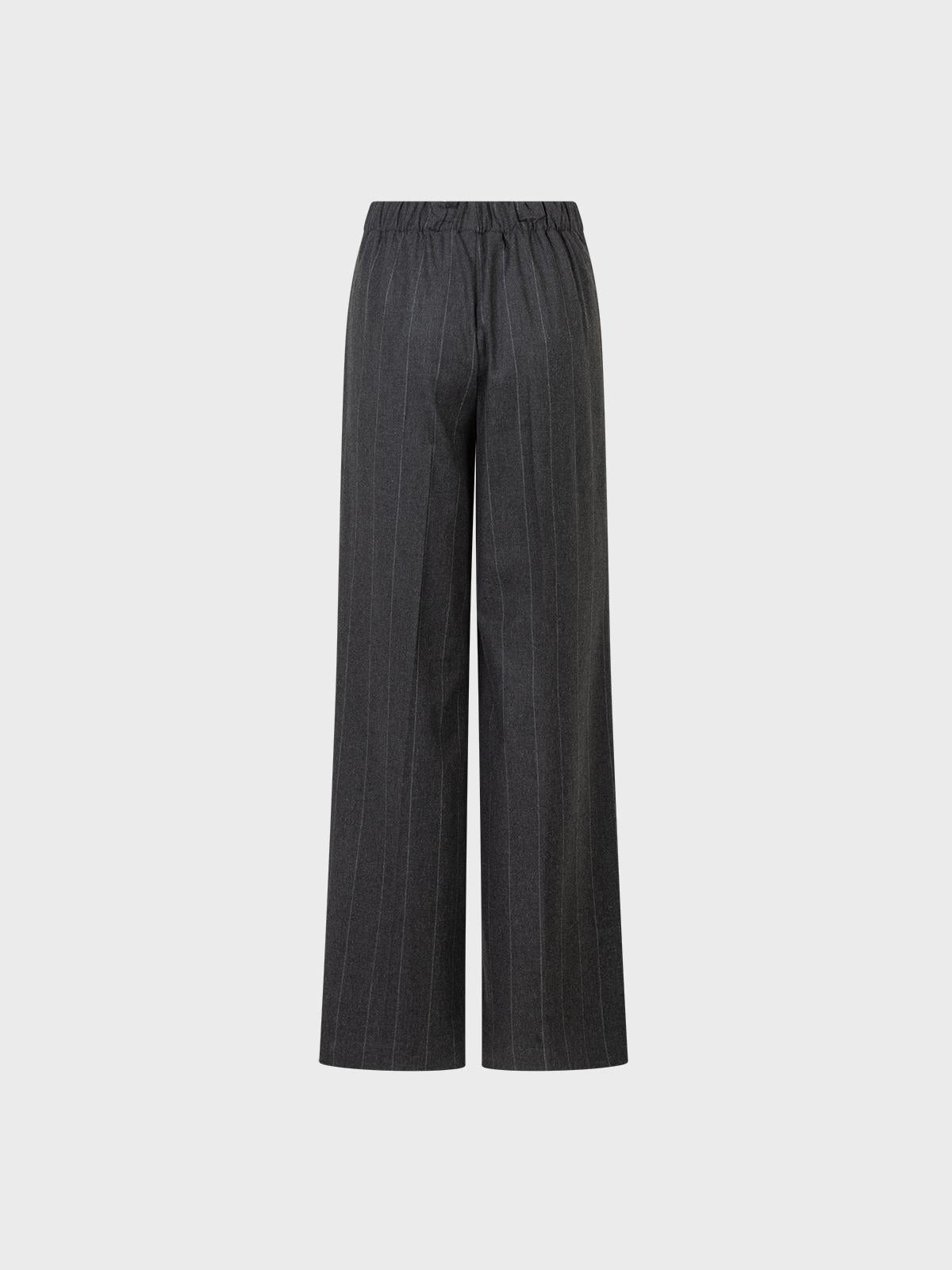 Pantalone in misto lana gessata con allacciatura e tasche davanti