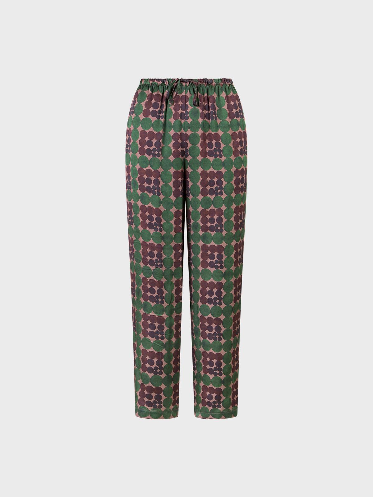 Pantalone in raso di viscosa stampato con tasca e coulisse in vita